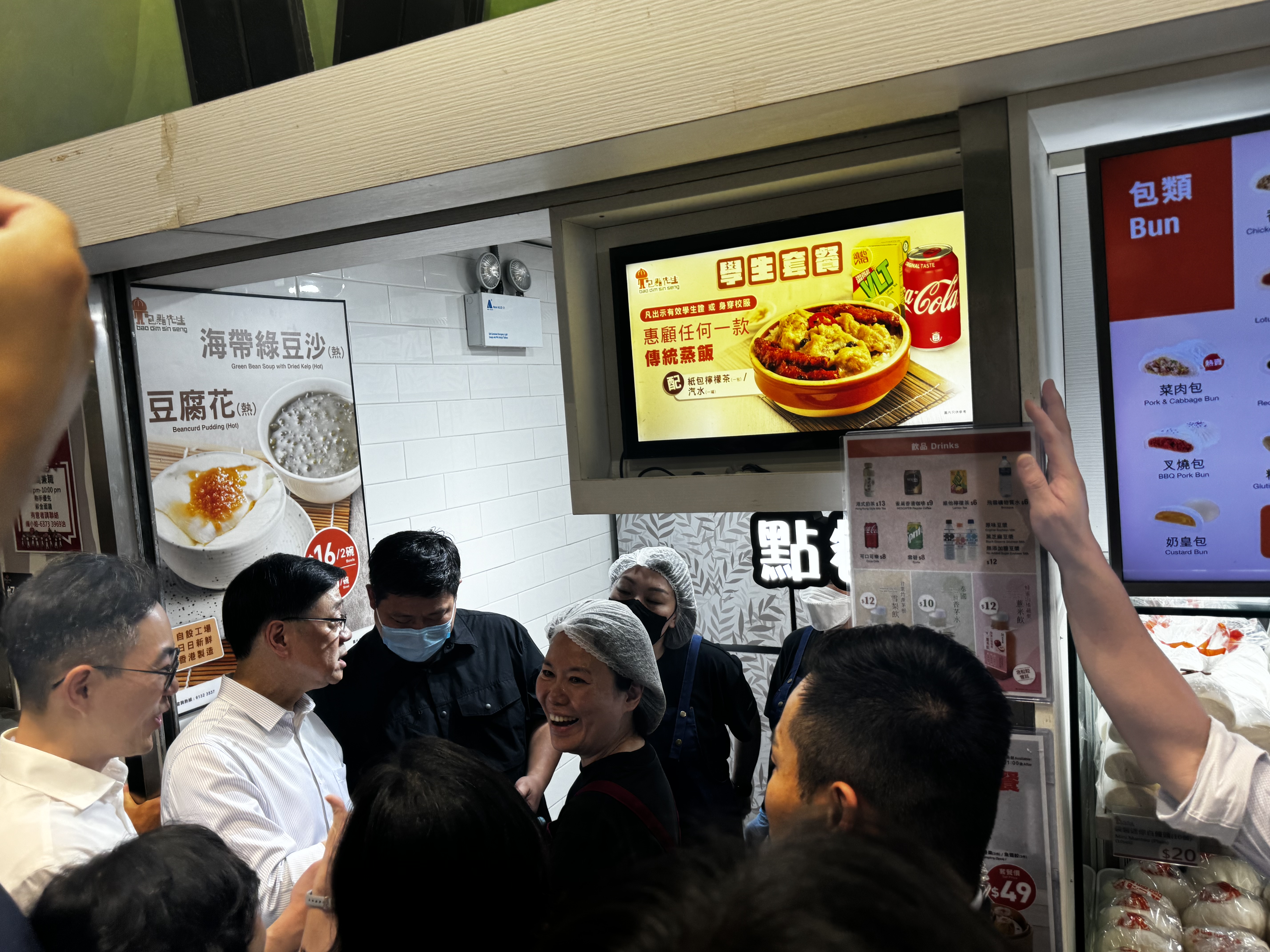 李家超指很享受與街坊食飯,今日落區特別開心。他向街坊表示,好與不好的意見都要反映,因為政府的存在就是要解決問題;亦有同枱食客向李家超表示,希望政府再考慮派發消費劵,李家超回應說,會多方面努力,最重要是市民整體生活好。