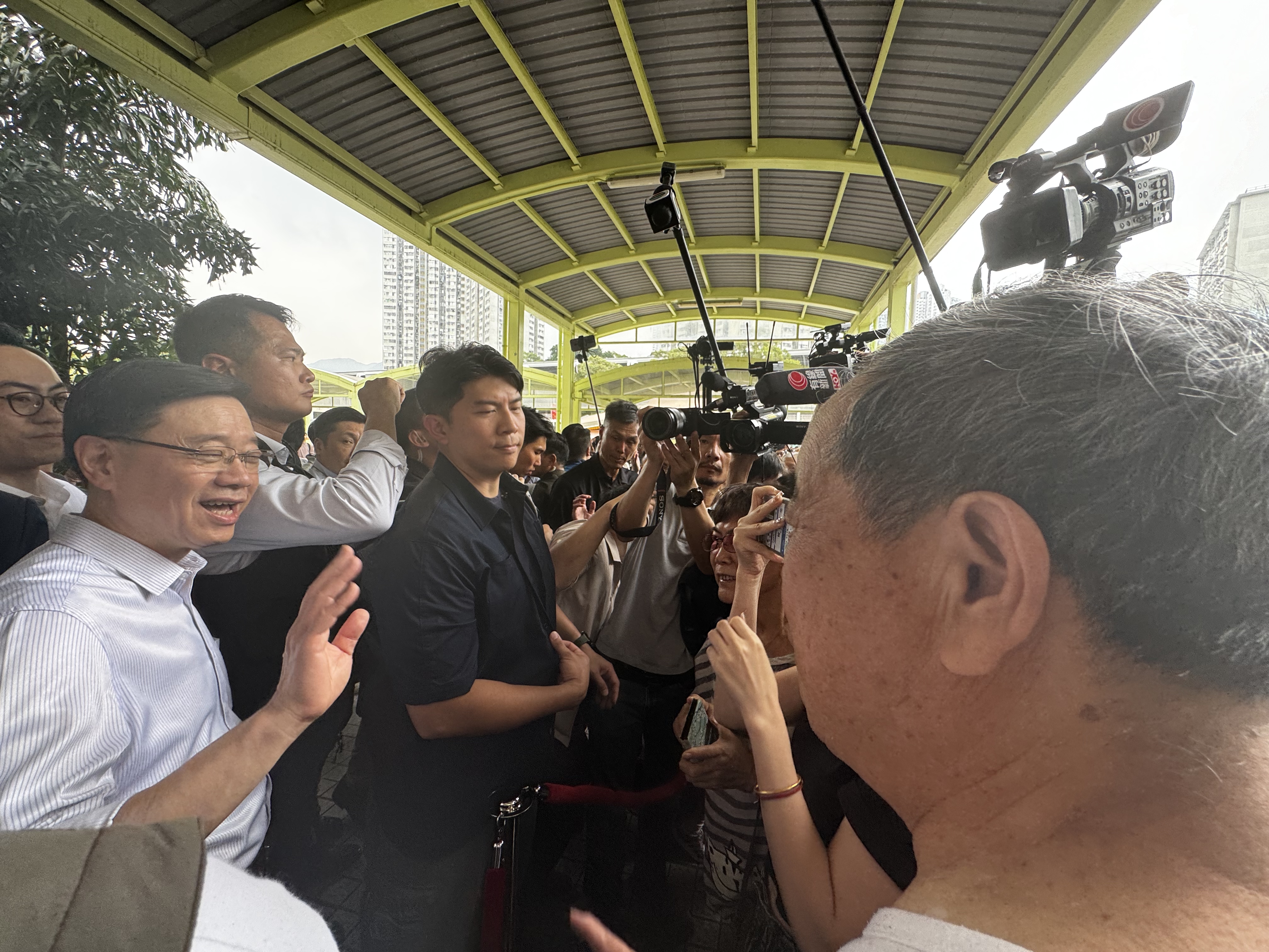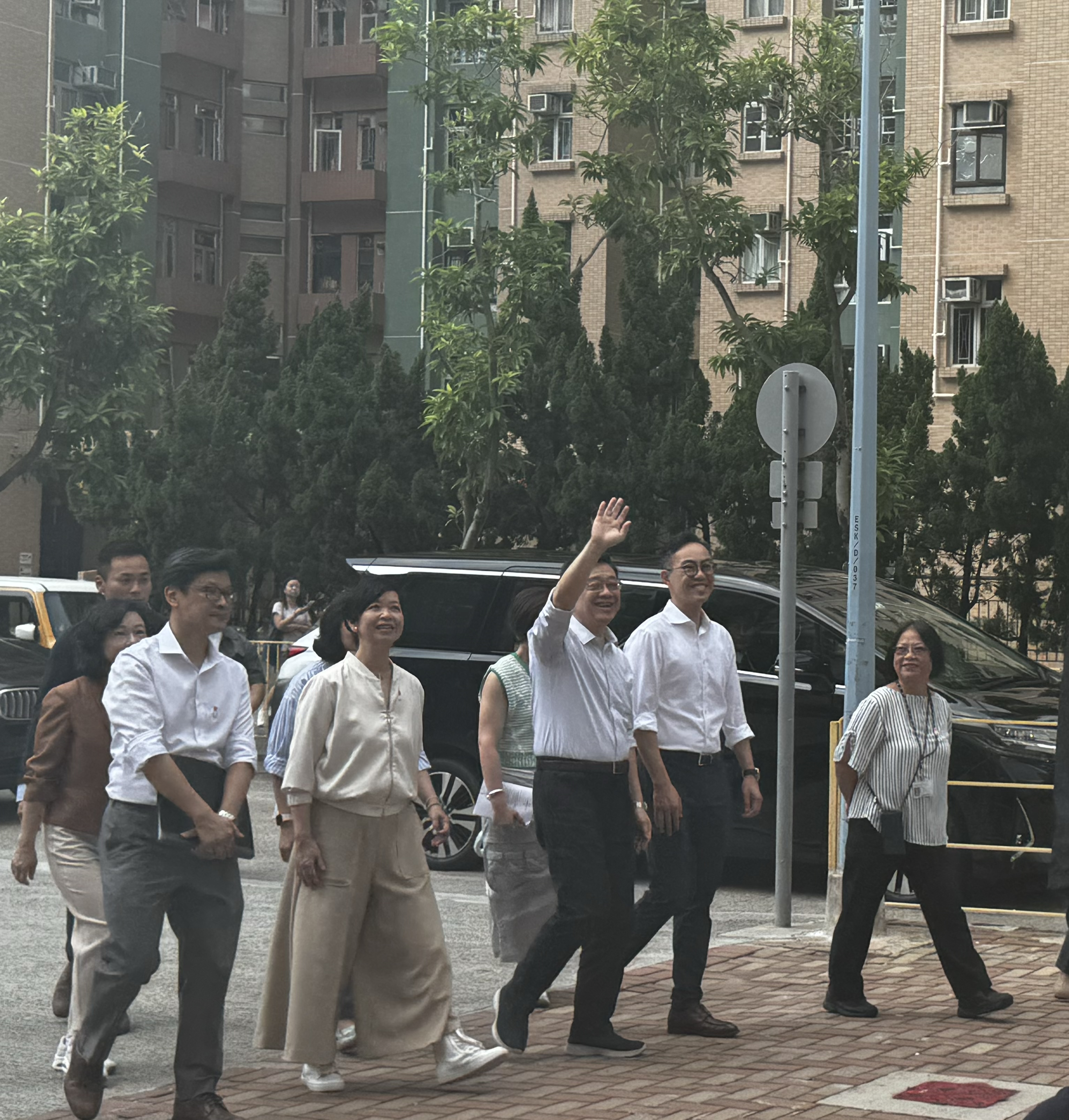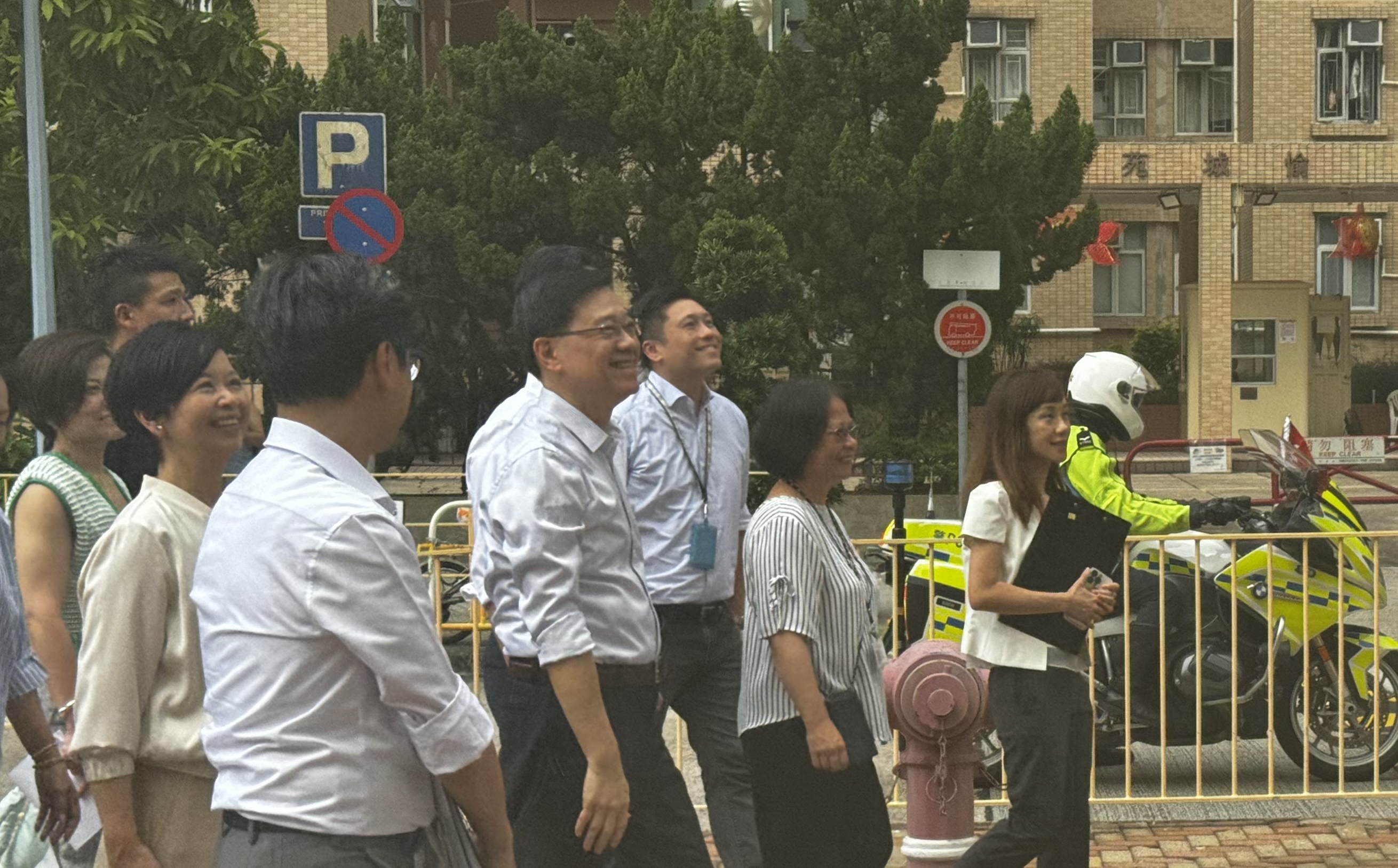 第一站李家超一行來到綠鷺樓,有街坊主動跟特首打招呼,特首也跟市民問好,市民祝特首「身體健康」,現場氣氛其樂融融。李家超到綠鷺樓視察翻新公屋單位,此前有人濫用公屋,當局對該單位進行收回、翻新,再分給新房主住。之後,李家超還分別到訪包點先生、茶餐廳同員工及街坊交流,眾多市民在茶餐廳外圍觀等候。