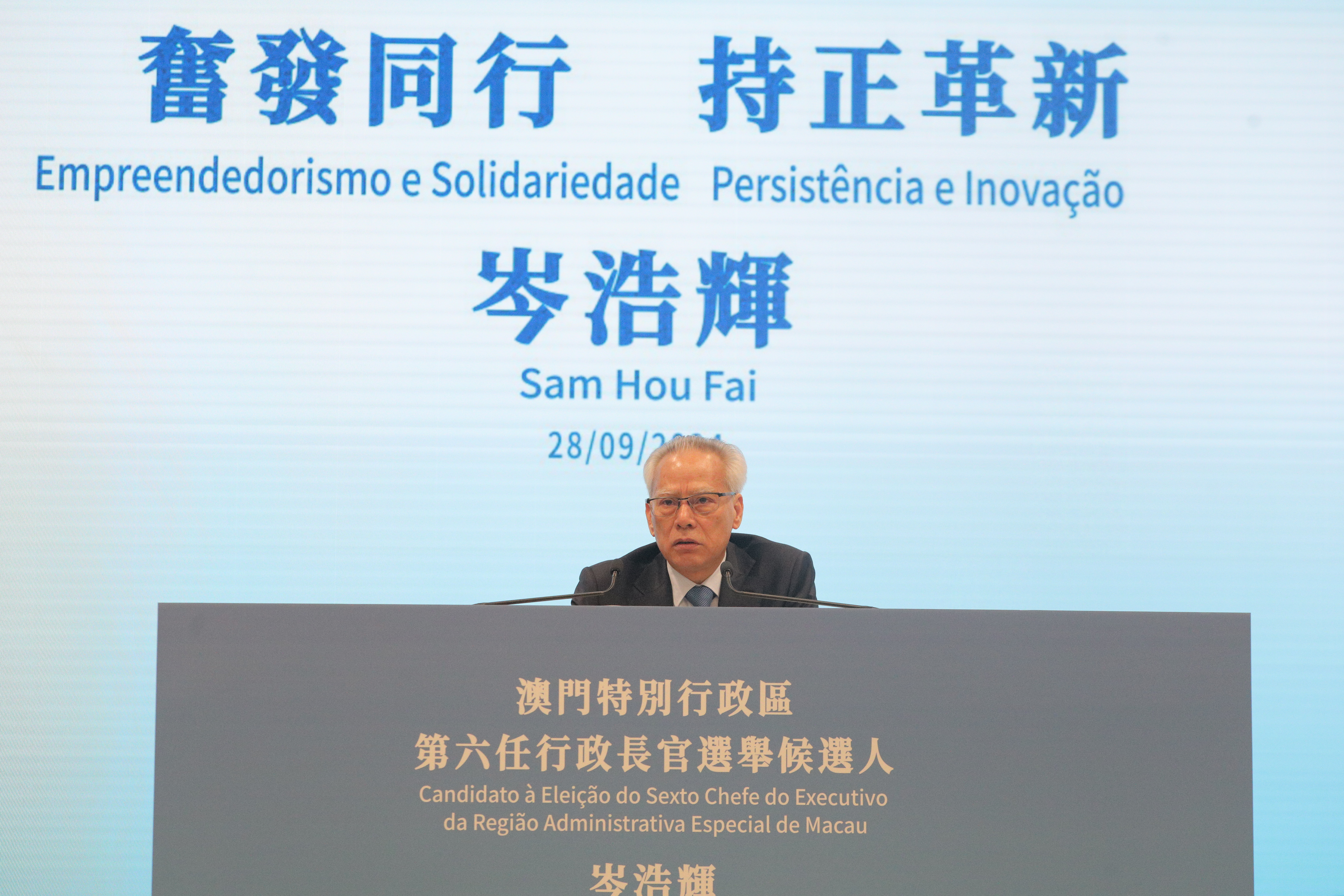 大公文匯全媒體報道,據澳門特區政府新聞局消息,澳門特區第六任行政長官選舉的競選活動期為9月28日零時至10月11日午夜12時。隨着競選期的展開,澳門特區行政長官選舉管理委員會於今日(28日)上午10時至下午1時,為澳門特區行政長官選舉候選人舉辦政綱宣講及答問大會,讓澳門特區行政長官選舉委員會委員了解候選人的政綱,並與候選人交流。