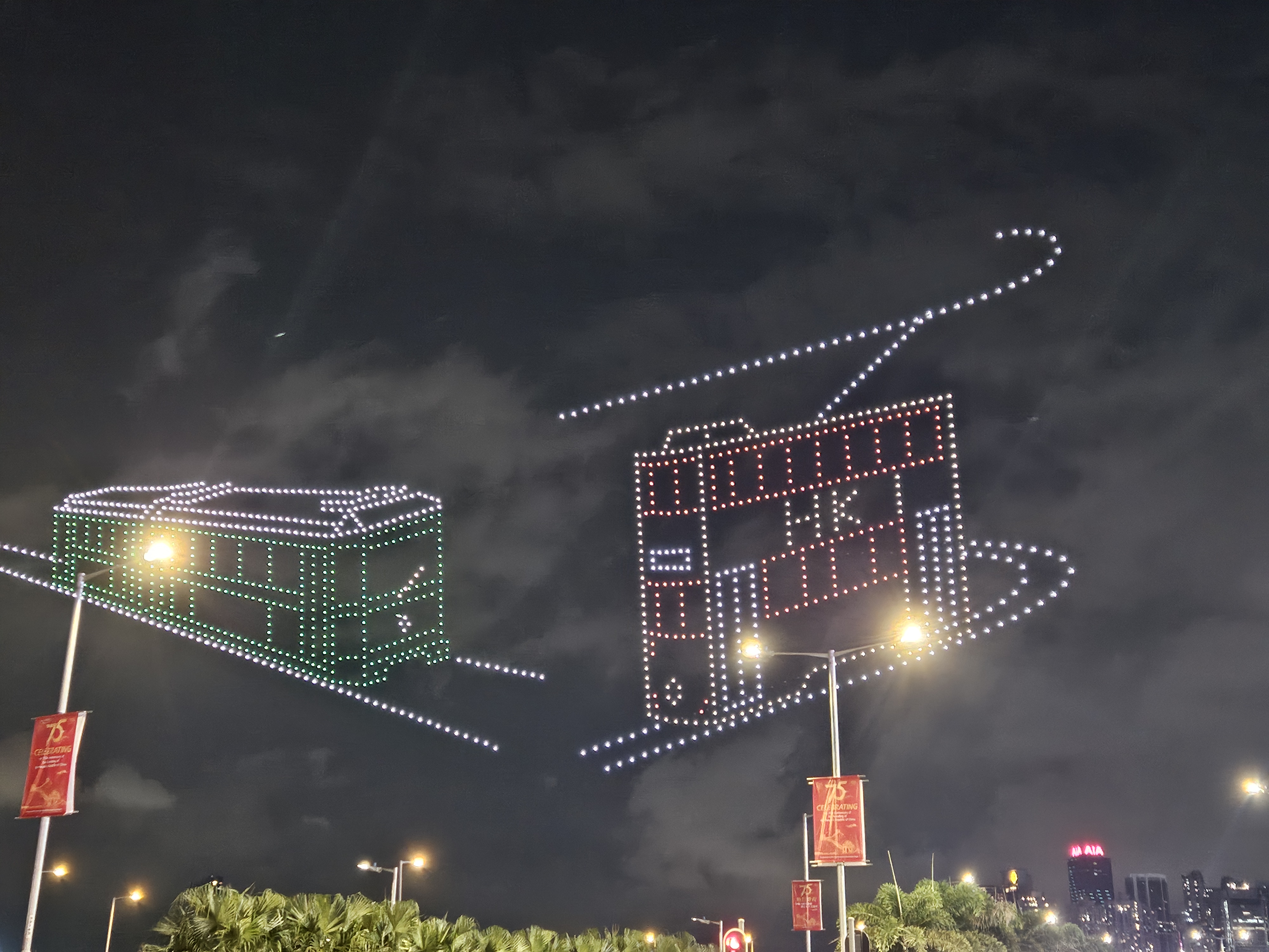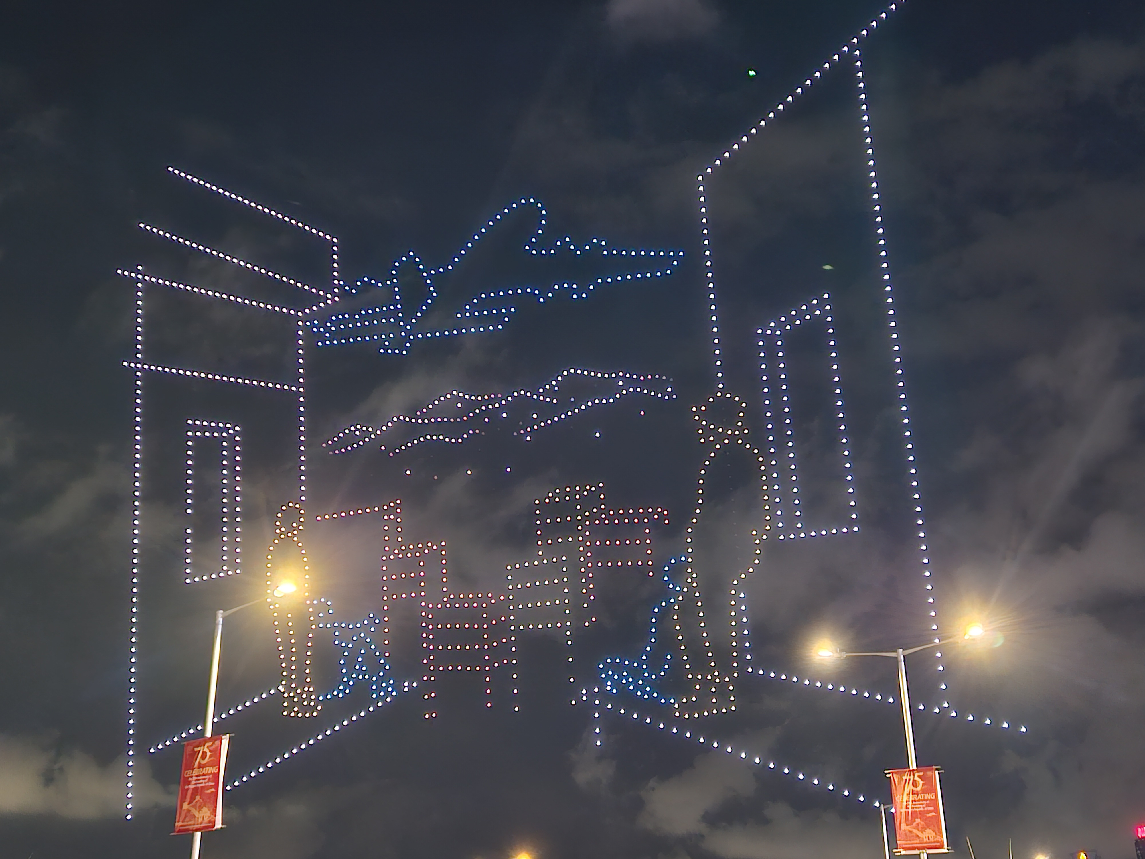 大公文匯全媒體報道,為慶祝中華人民共和國成立75周年,旅發局今晚(28日)8時在灣仔海濱舉辦無人機表演,大批市民在場觀賞。