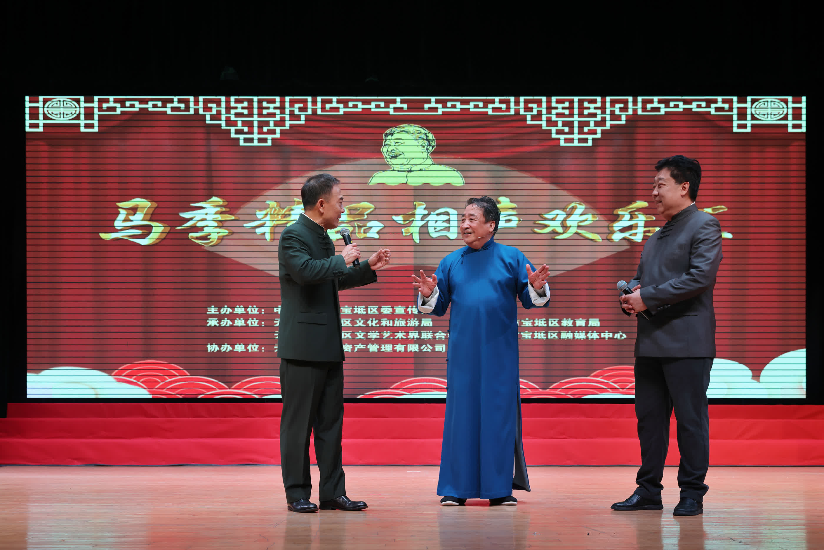 當晚,「馬季精品相聲歡樂匯」在寶坻劇院精彩上演。馬季先生再傳弟子李寅飛、葉蓬,第四代弟子周鵬飛、陳威表演了《勞動號子》、《數字與生活》,侯振鵬、陳印泉表演了《傳謠》,應寧、李增瑞表演了《方言歌曲》,寶坻區演員張舉表演了《宇宙牌香菸》,為經典作品又注入了新的理解和演繹。首屆「馬季杯」中小學生展演獲獎選手帶來獲獎作品《寫作文》,「相聲新勢力」讓人耳目一新。姜昆、戴志誠、鄭健壓軸出場,帶來《一僕二主》再現經典贏得滿堂喝彩。