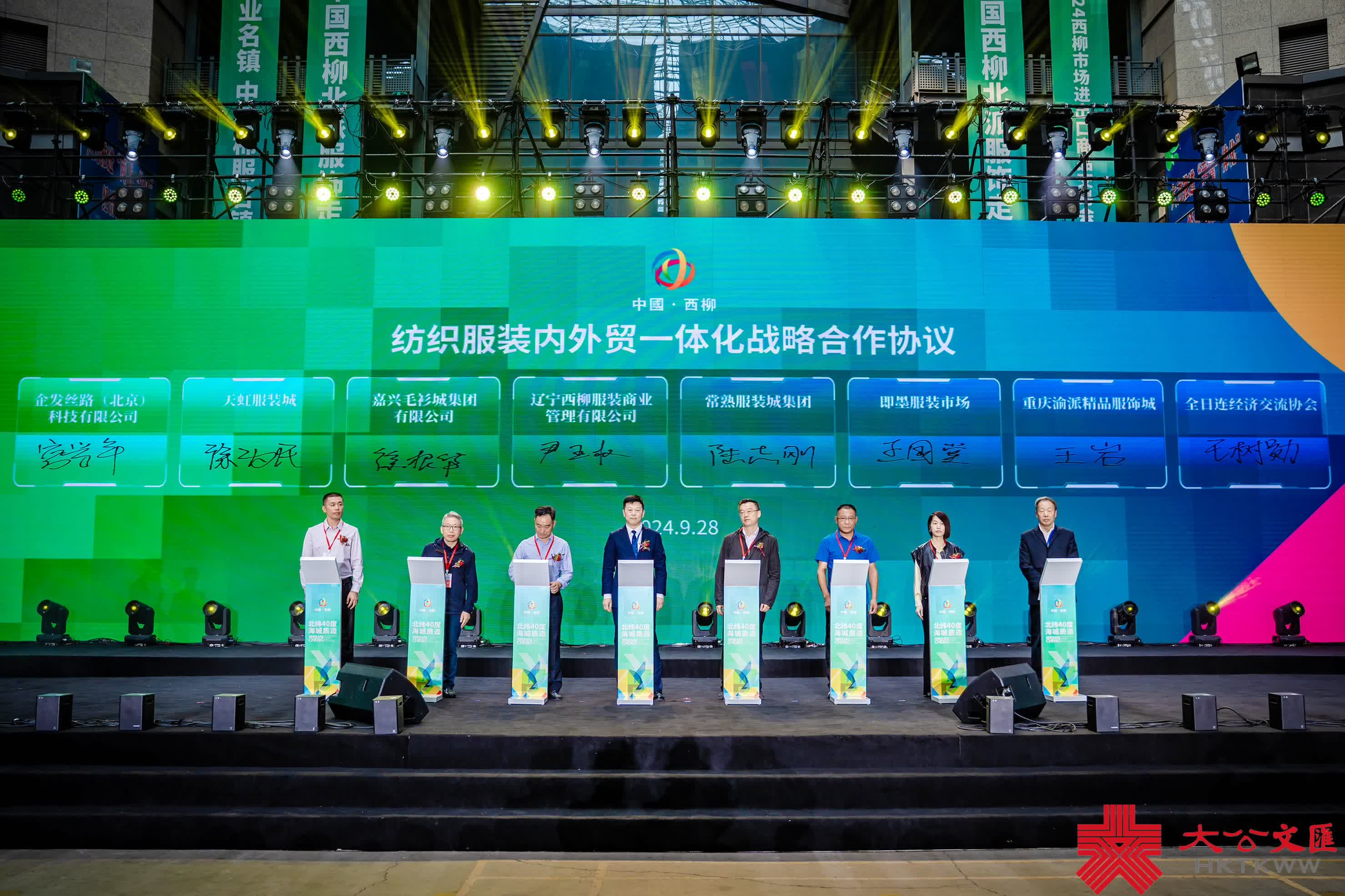 開幕式上,遼寧西柳服裝商業管理有限公司、常熟服裝城集團、嘉興毛衫城集團、即墨服裝市場、天虹服裝城、重慶渝派精品服飾城、企髮絲路(北京)科技有限公司、全日連經濟交流協會等共同簽署《紡織服裝內外貿一體化戰略合作協議》。海城市政府還與新興際華(北京)材料技術研究院簽訂戰略合作協議,就未來共同推進西柳紡織材料供應鏈的創新與發展達成戰略意向。