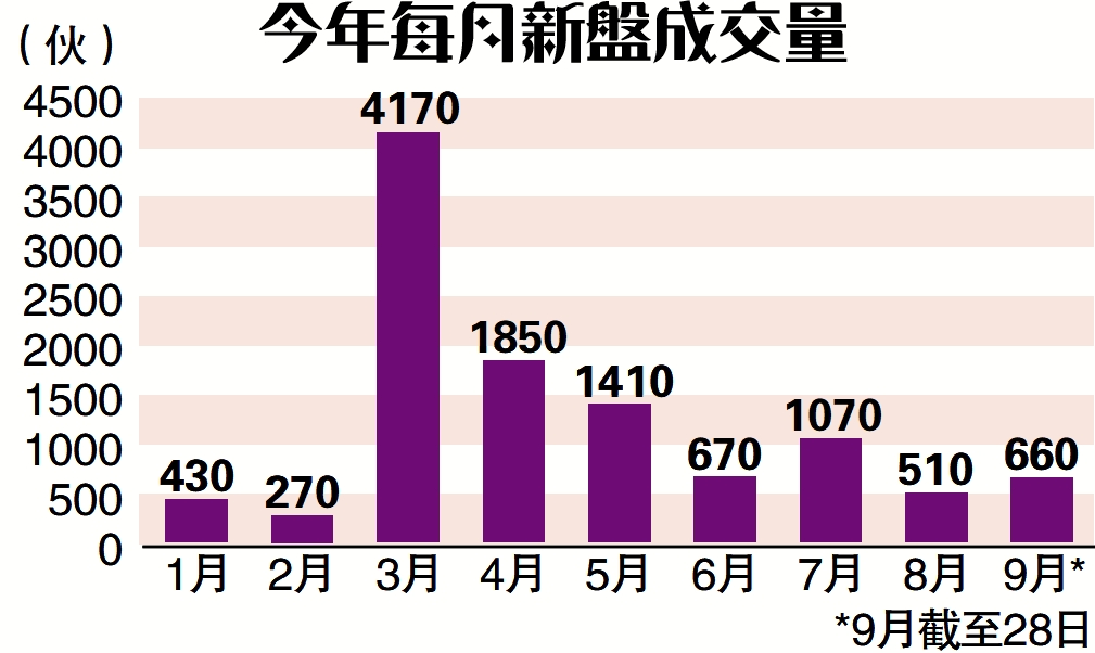 美聯物業住宅部行政總裁布少明預期,全月一手交投可錄約700宗,相信10月將進一步上升,有望錄得逾2000宗成交。