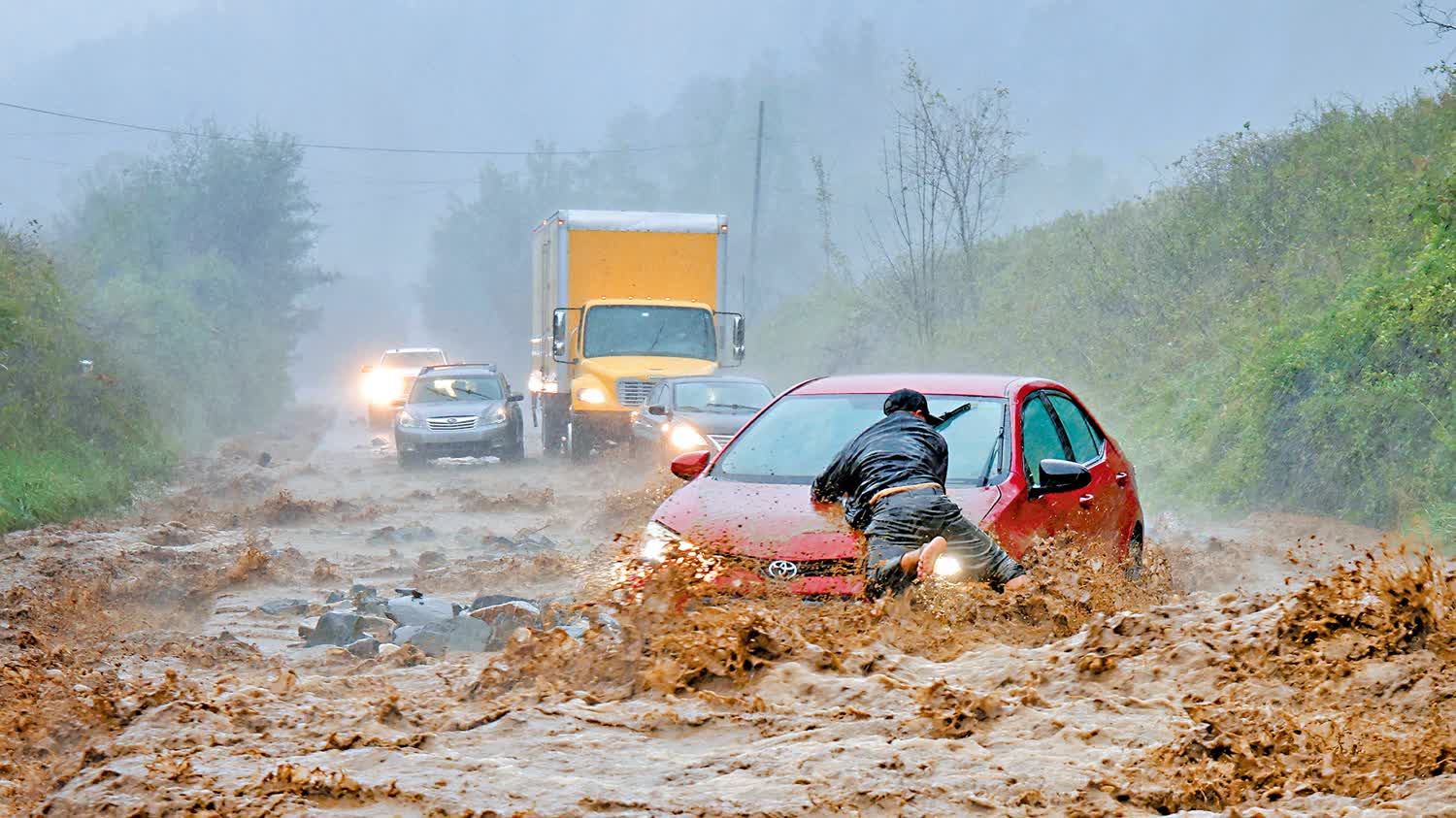 部分地區錄得的降雨量為百年一遇。北卡羅來納州西部地區遭遇嚴重洪患和山泥傾瀉,全州已有290條道路關閉。該州阿什維爾的居民稱,洪水在一夜之間將大塊瓦礫衝入街道上,「整個城市一片混亂」。從25日至27日早上,北卡山區的降雨量超過600毫米,布希克地區在48小時內共記錄了751毫米的降雨量,亞特蘭大在48小時內降雨量達到了創紀錄的282毫米,是該地區自1878年有紀錄以來的最高降雨量。許多社區被嚴重淹沒,只能看到車頂露出水面。北卡羅來納州城市阿什維爾宣布,27日晚實施全城宵禁,以保證公眾安全。