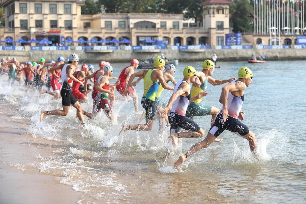 上午8時30分,隨着開賽的汽笛聲響起,「鐵人們」爭分奪秒躍入水中,在藍天白雲之下開展了一場速度與耐力的較量。本次比賽設男子優秀組和女子優秀組兩個組別,比賽中,運動員們將完成1.5千米游泳、40千米騎行以及10千米跑步,競賽總距離達到51.5千米。