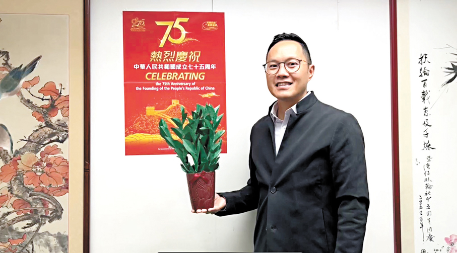 「愛國主義教育像陽光一樣溫暖,滋養着每個人的心靈,灌溉着香港市民,特別是下一代心中的愛國種子。」在喜迎新中國成立75周年之際,香港特區愛國主義教育工作小組成員蔡德昇將他過往參與愛國主義教育活動中,一位小學生精心製作的手工樹作為賀禮獻給祖國,寓意國家生機勃勃的發展,祝願祖國繁榮昌盛。他希望透過自己不斷努力,落實立德樹人的教育理念,為我國由教育大國轉變為教育強國貢獻力量,為中華民族偉大復興培養更多優秀人才,共創更加輝煌的未來。