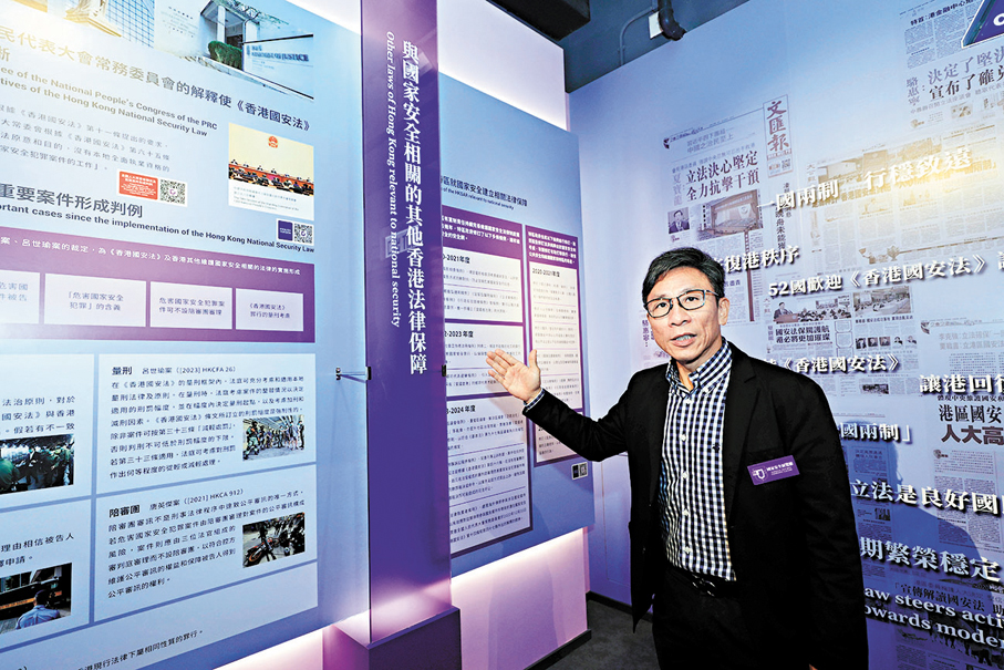 「只有國家安全得到保障,我們的每一個夢想和希望才有了實現的可能;人民幸福生活的福祉,才有了得到根本保障的條件。」設於尖東香港歷史博物館二樓的國家安全展覽廳於今年8月初開幕,是香港首個系統介紹國家安全的專廳,平均每日訪客逾2,600人,廣受社會各界的歡迎。國家安全展覽廳負責人張建光以展覽廳開幕以來取得的優良成績作為賀禮,祝祖國繁榮昌盛。