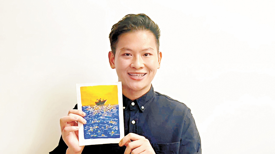 他表示,自己今次獻給祖國的禮物是一幅畫,畫上有繁星擁護着一艘船,因為這象徵着維護國家安全是每一位香港市民的責任。「我相信國家會在眾多繁星的擁護下愈來愈好,祝願我們的祖國繁榮昌盛!山河永固!」