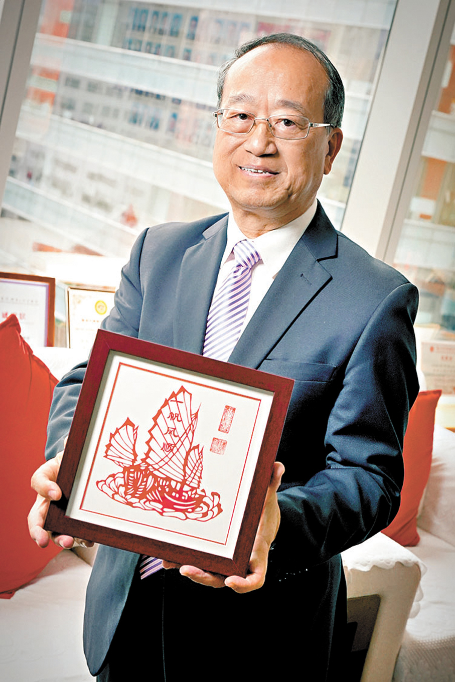他表示,今次獻給祖國的禮物是一幅汕頭傳統剪紙作品《一帆風順》,希望以此祝願國家未來的發展,以及實現中華民族偉大復興的道路,都是一帆風順。