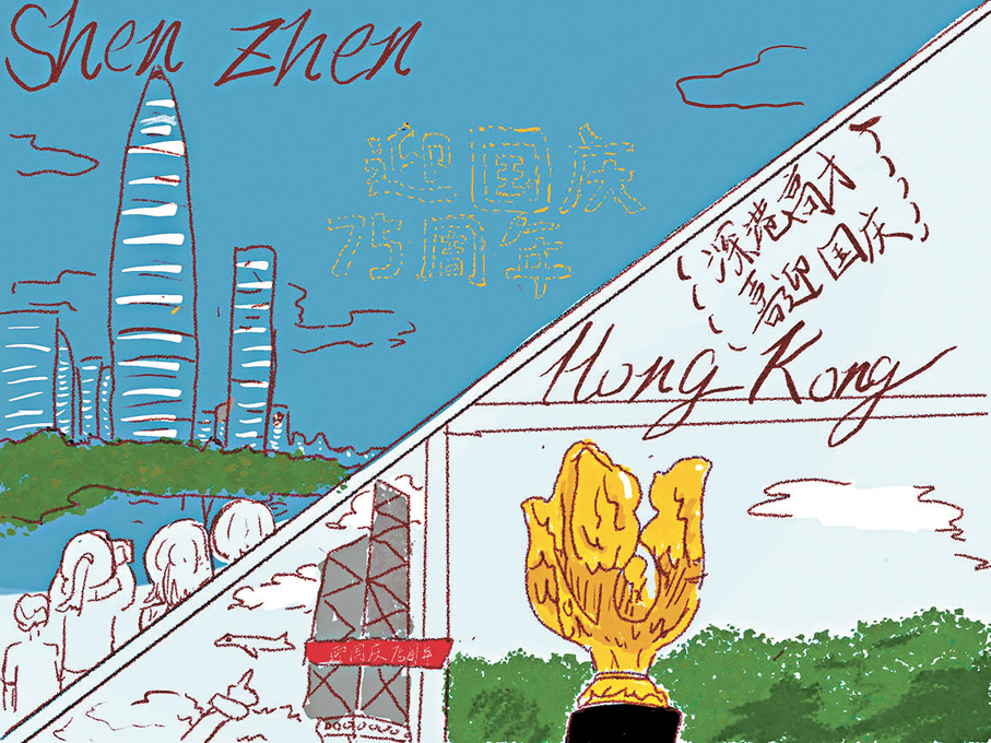 畫作上,一邊是深圳的人才公園,一邊是香港的金紫荊廣場。他們說,這寓意深港一家親、粵港澳大灣區共同發展。他們期待與香港一起,共同創造更美好的未來,祝祖國繁榮昌盛、山河錦繡、國泰民安。