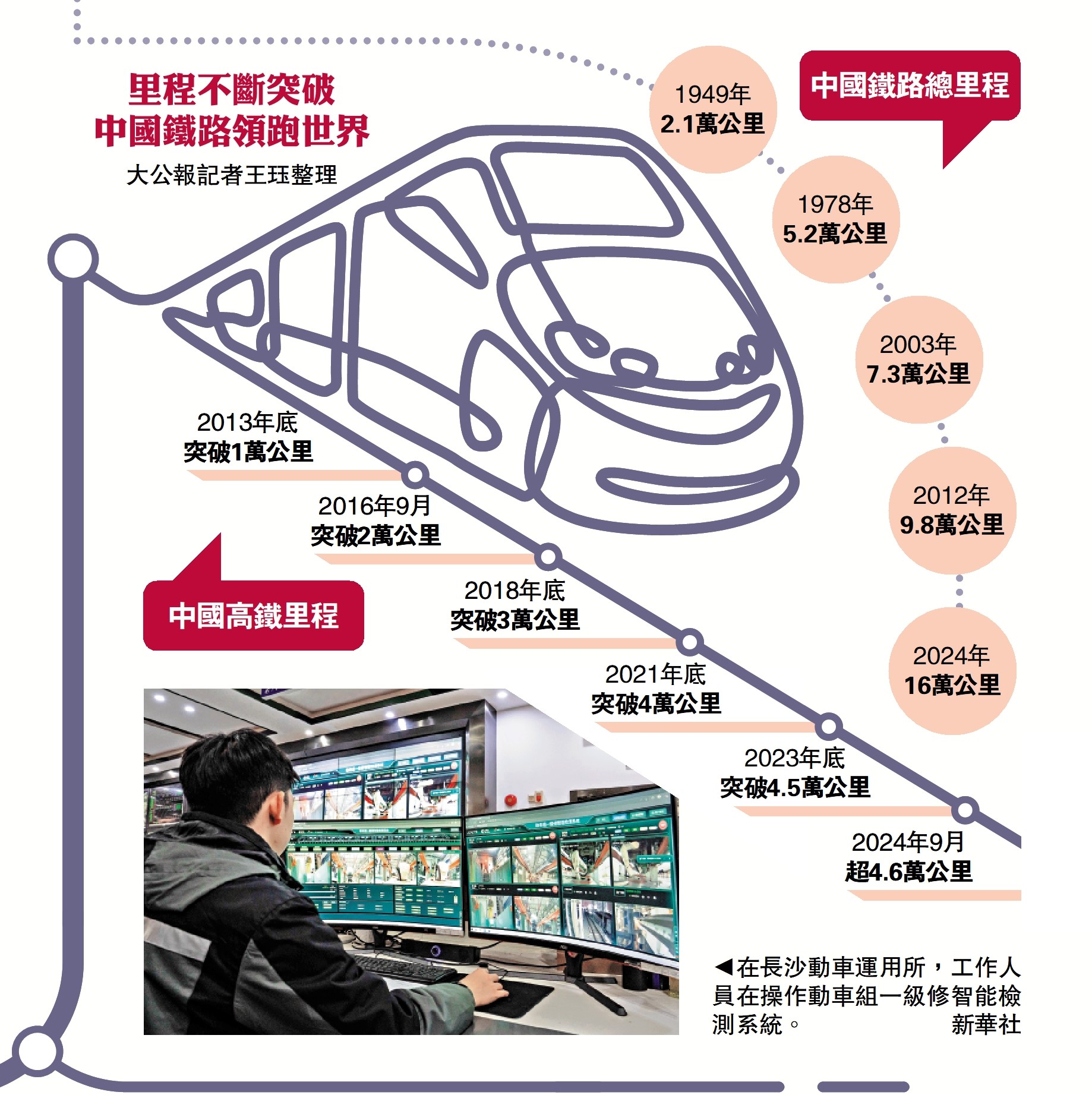 (大公報 記者 王珏)中國鐵道博物館保存着一套特殊的藏品─火車司機韓軍甲的九本火車駕駛證。作為中國鐵路「全履歷火車司機」,他親歷了中國鐵路機車從蒸汽機車、內燃機車、電力機車再到如今「和諧號」、「復興號」的五代變遷。最早他駕駛時速50公里的蒸汽機車,四處透風、咣咣直響,從北京到上海要一天半時間;如今無線上網、智能控制的「復興號」動車一小時「貼地飛行」350公里,京滬四個半小時可達。據透露,樹起國際標桿的中國高鐵,又在加緊攻堅商業運營時速400公里新紀錄,即將刷新新的中國速度。