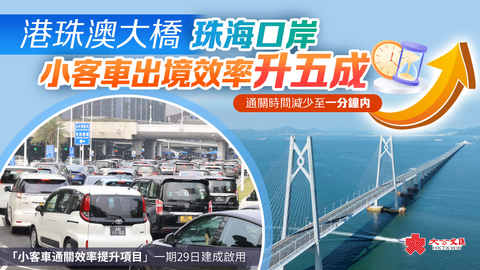 ●大橋珠海口岸通關小客車高峰期出境應急驗放能力由之前950輛次每小時提升至1,500輛次每小時