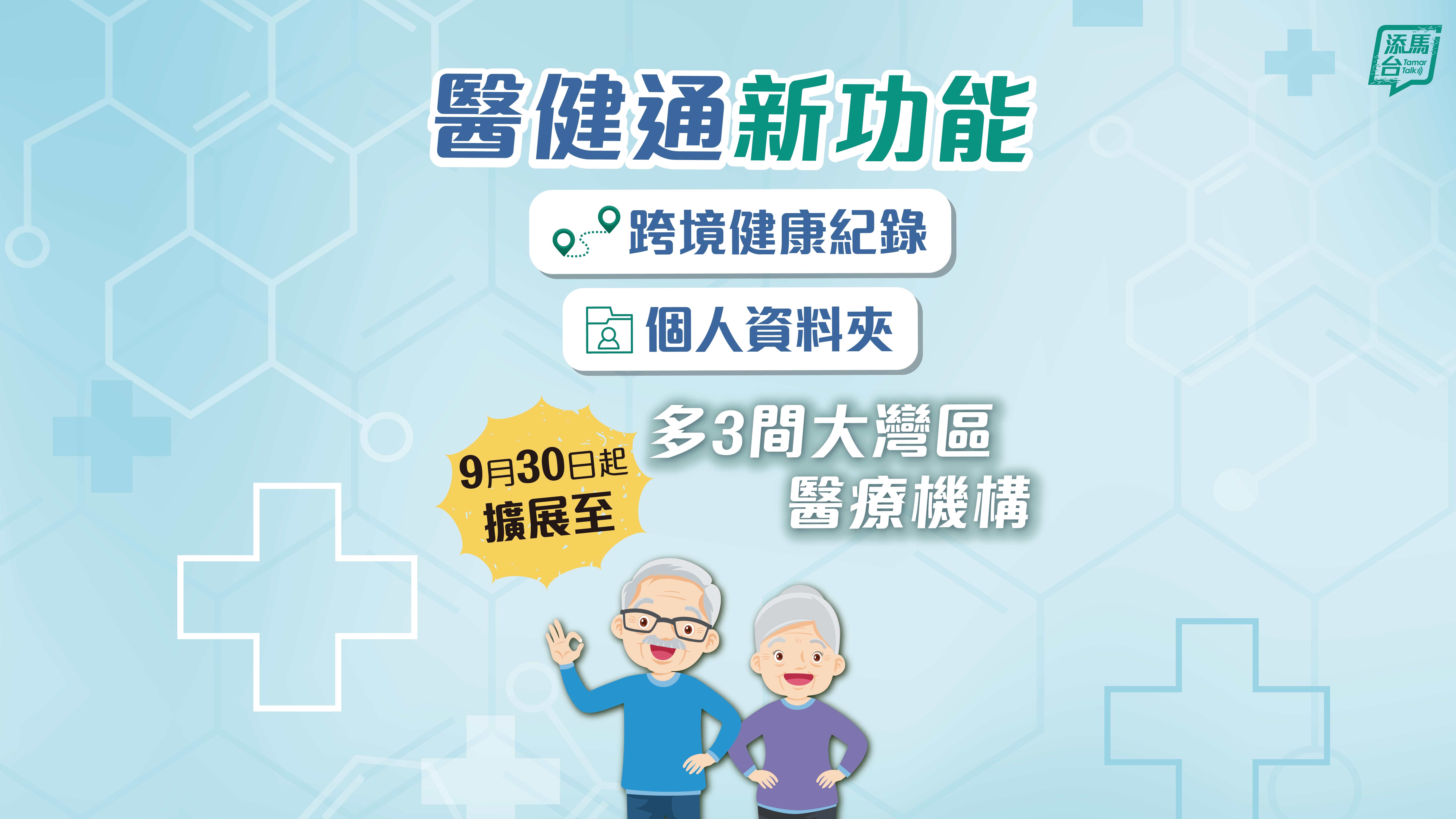 由今日(9月30日)起,醫健通流動應用程式的「跨境健康紀錄」及「個人資料夾」新功能,擴展至「長者醫療券大灣區試點計劃」下的中山大學附屬第一醫院南沙院區、東莞東華醫院和深圳新風和睦家醫院,以便利香港市民安全地跨境使用電子健康紀錄,獲取更連貫的醫療服務。