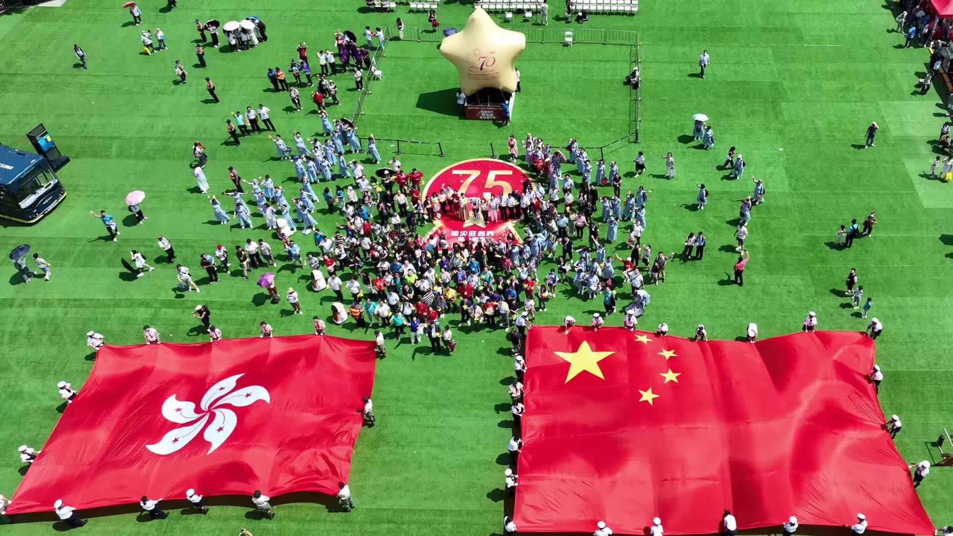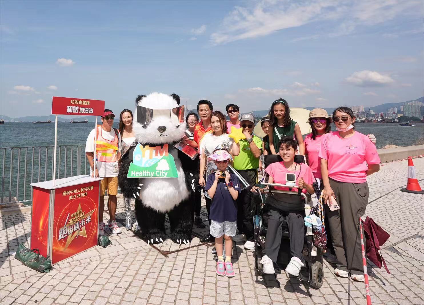上午10時30分,750名社區力量參與「幻彩金星跑」。參與的約30支隊伍涵蓋政府地區三會、街坊會、同鄉社團代表、油尖旺青年社、極地同行、復康力量-傷健共融隊等社區團體。每支隊有3名代表,身穿未來特色科技服裝,跑步過程中途經「和諧、團結、愛國」幻彩金星跑加油站,收集賀國慶之星,將75顆賀國慶之星注入「75」字型啟動裝置,以此為國家75周年華誕送上祝福。