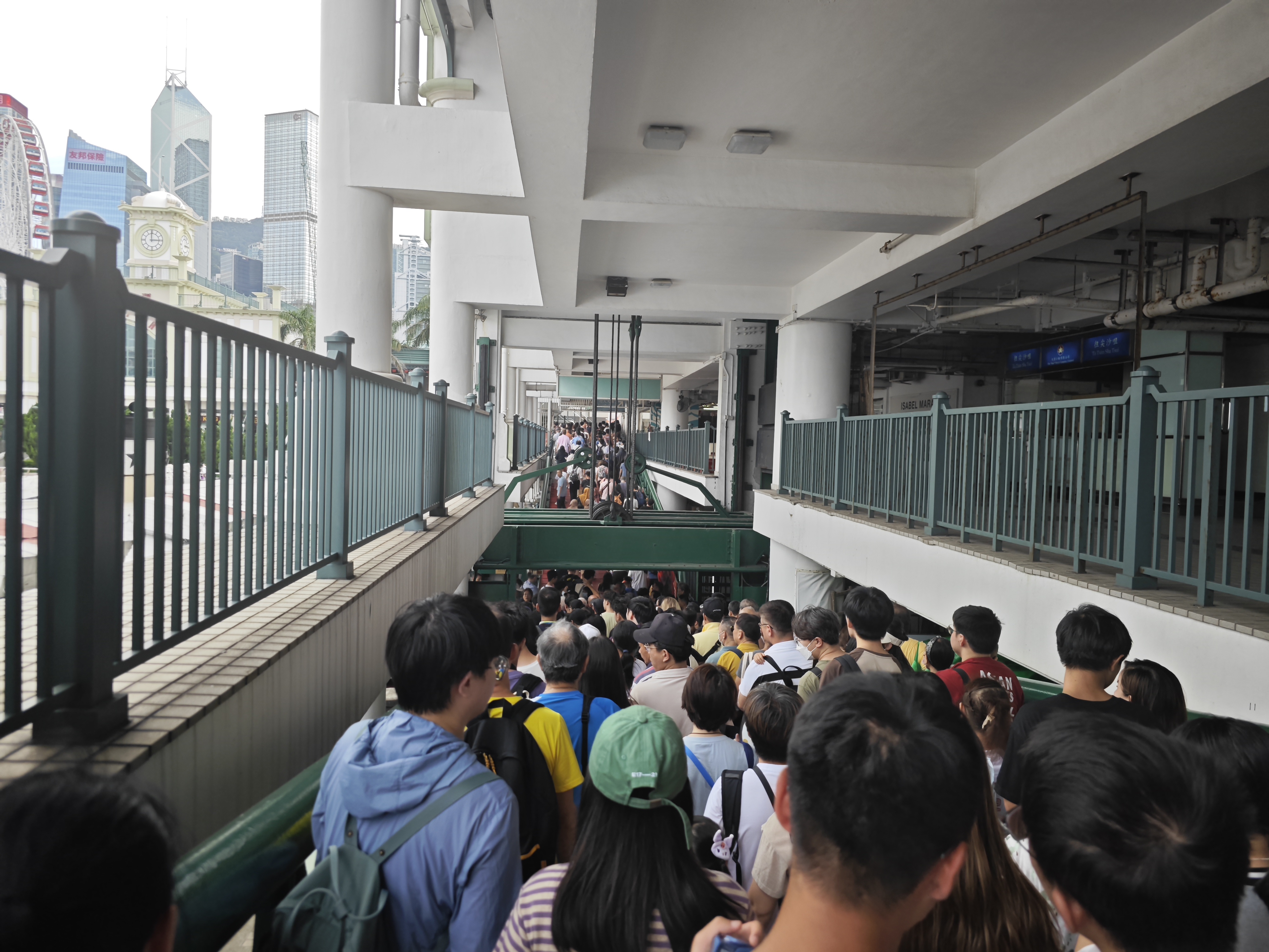 受惠內地黃金周效應,銅鑼灣、尖沙咀、旺角等地的人流顯著增加。記者今午從銅鑼灣出發,乘搭電車前往中環碼頭,再經天星小輪過海。電車車廂內迫滿客人,司機幾乎無法關門。相比之下,天星小輪則有票數和座位限制,方便職員做好人流管制,未有出現明顯的混亂。