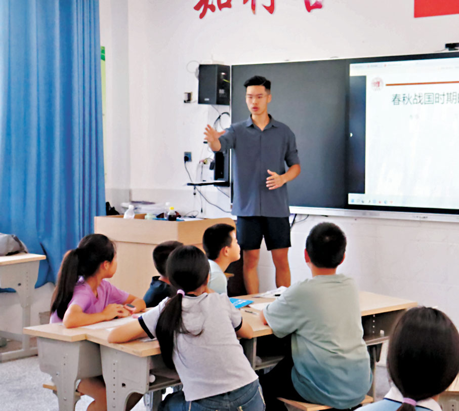在實踐方面,姜霏梵參加了多個公益助教計劃,今年暑期他來到遵義的道真縣上壩村,為當地學生提供暑期夏令營服務,「我是歷史系學生,在公益助教方面,我是很有優勢的,因為歷史就需要我在閱讀和理解各種歷史文獻時,精準地提煉關鍵信息,並用清晰、有力的語言去複述和闡述。」