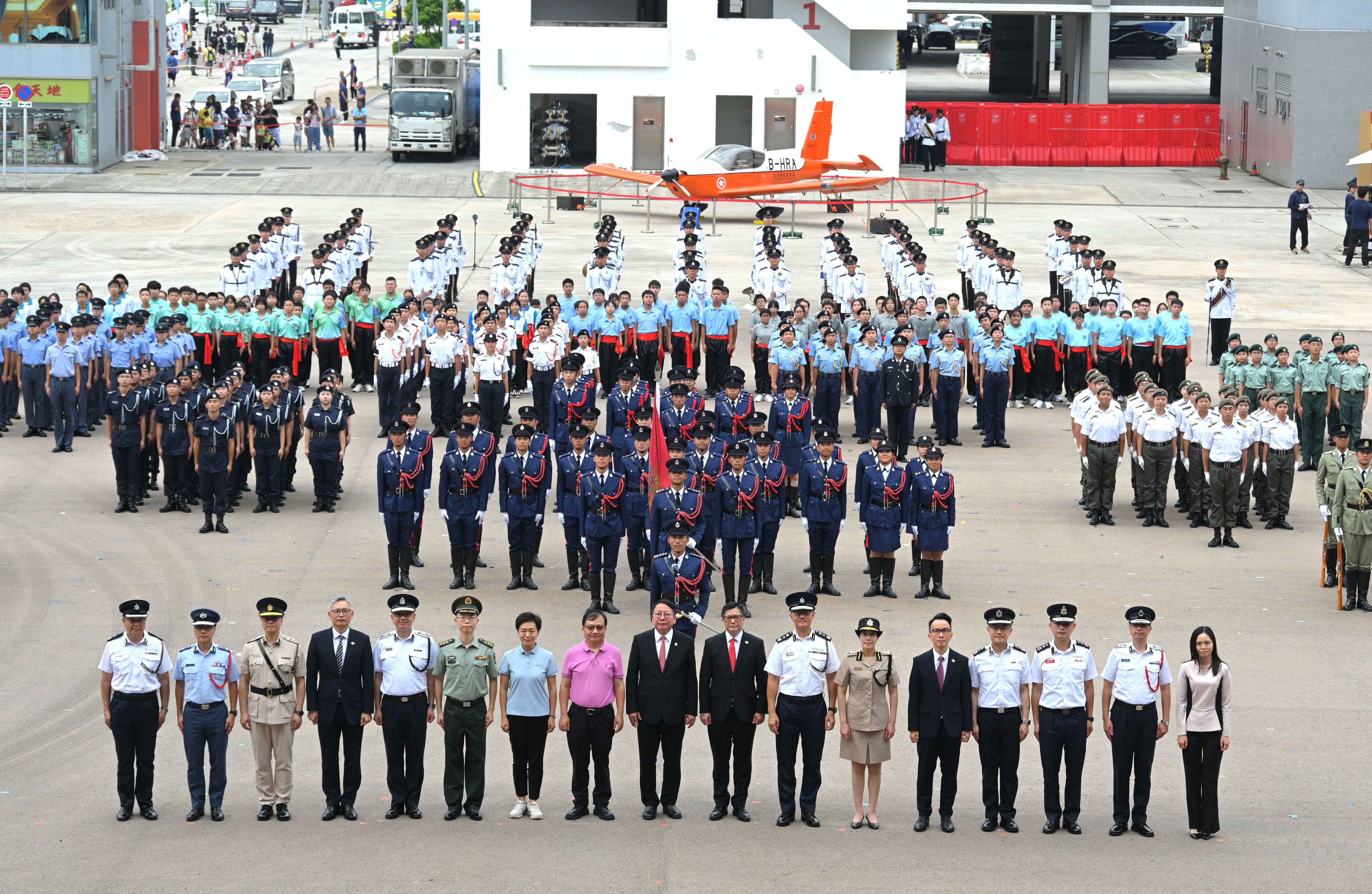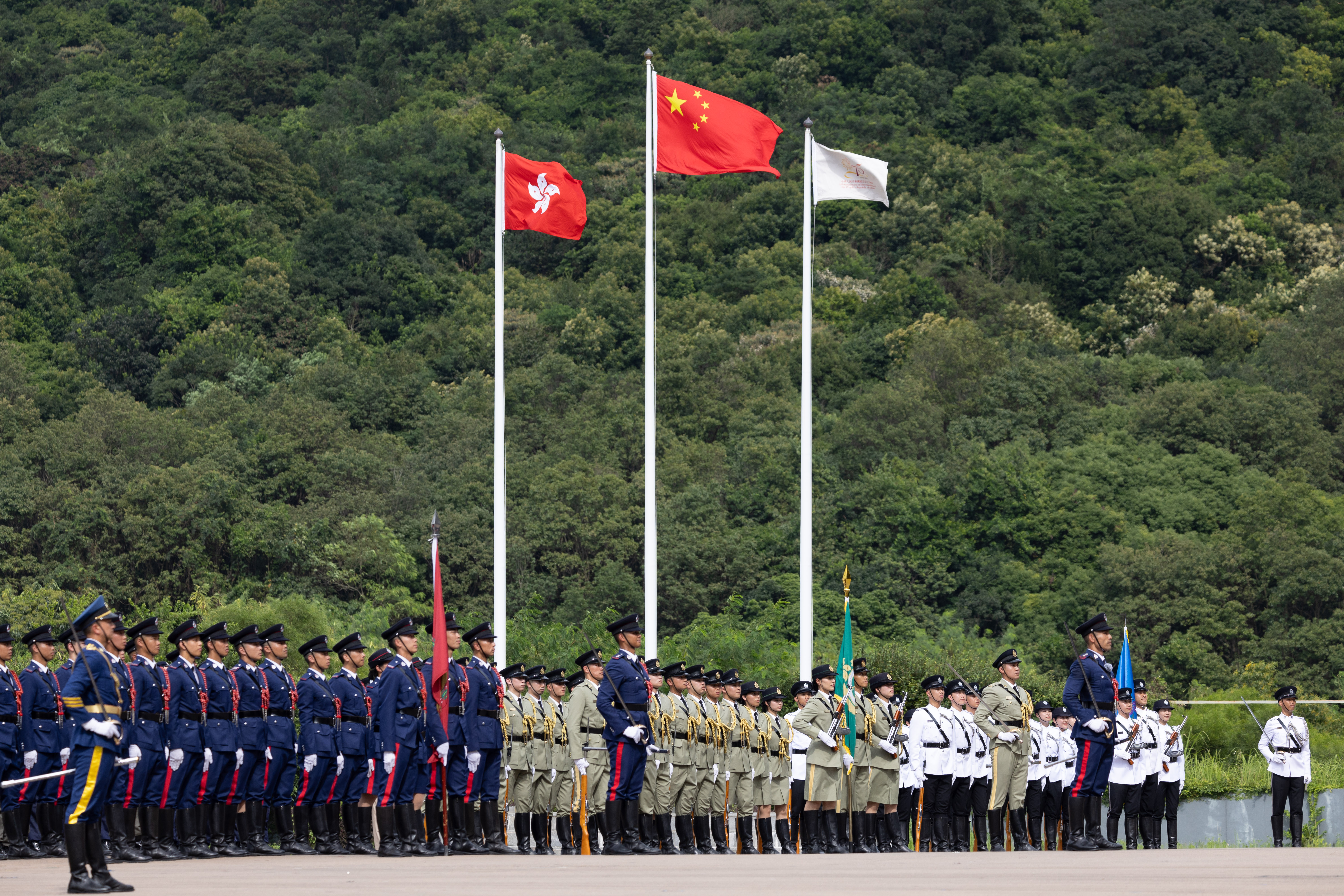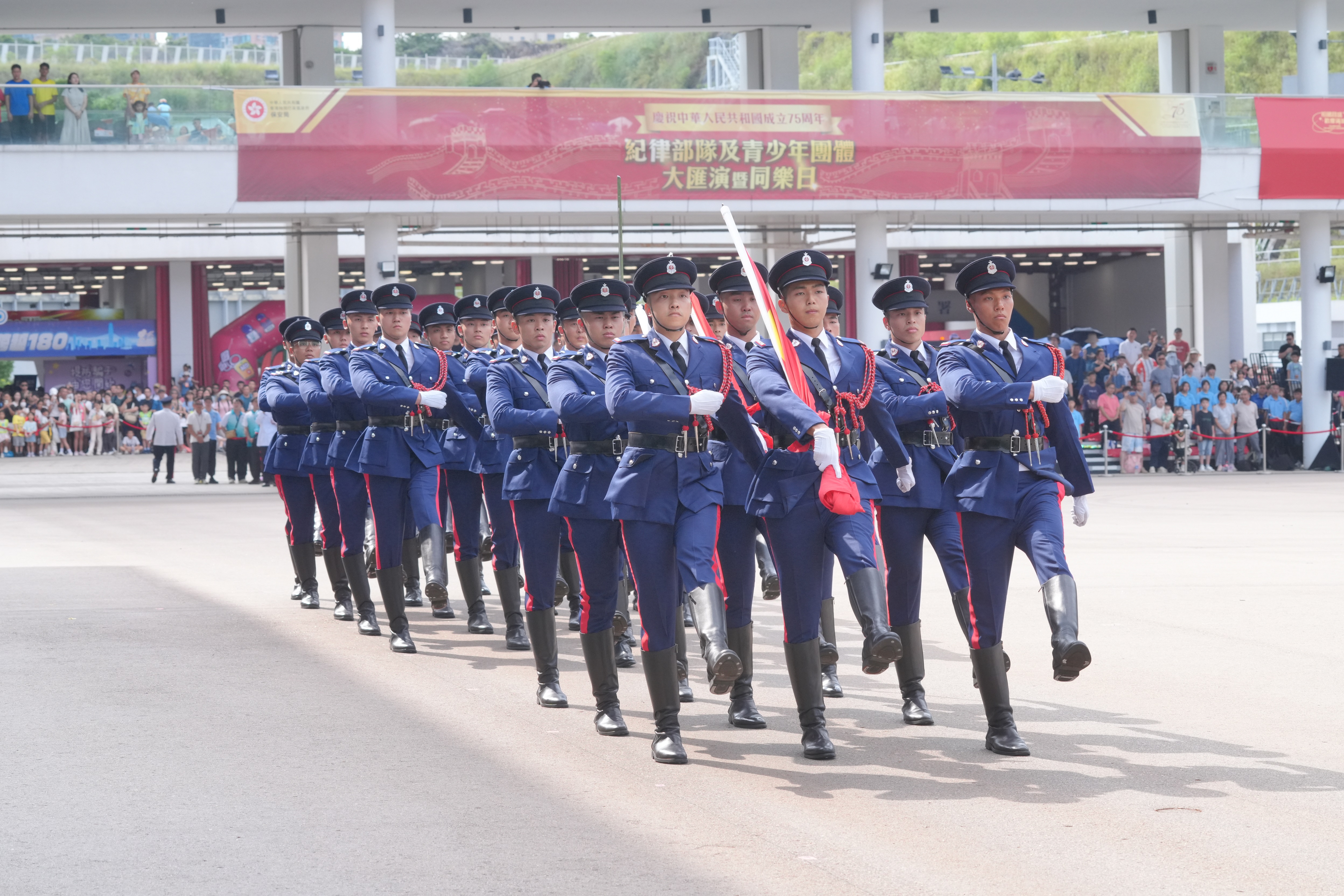 紀律部隊和青少年制服團體大匯演下午舉行。活動先由不同紀律部隊及輔助部隊樂隊的表演拉開序幕。在警察樂隊的演奏下,各部隊和團體的成員以中式步操英姿颯颯進場,消防處護旗方隊繼而進行升旗儀式,現瑒奏唱國歌,政府飛行服務隊直升機在空中敬禮。