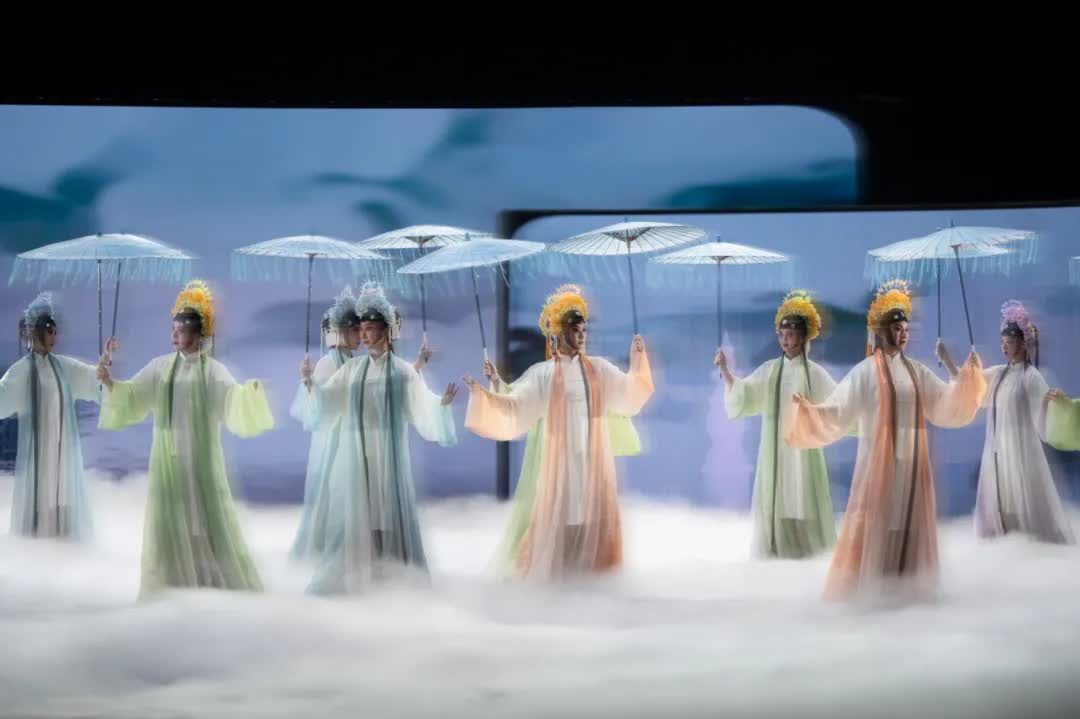 國家大劇院製作京劇《白蛇傳》在視覺上展現出中式美學的含蓄與清透,利用舞臺空間與多媒體佈景技術,配合戲曲的虛擬性營造出氛圍感,將藝術與技術結合,觀眾仿佛置身於斜風細雨的西子湖畔。