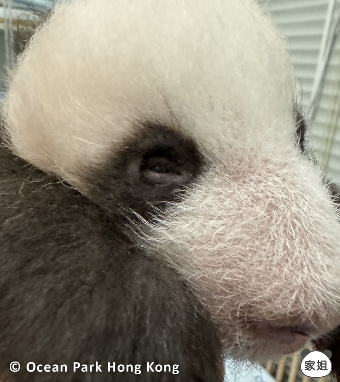近日,海洋公園的大熊貓團隊,發現家姐細佬剛剛睡醒時,兩隻眼睛都微微張開!