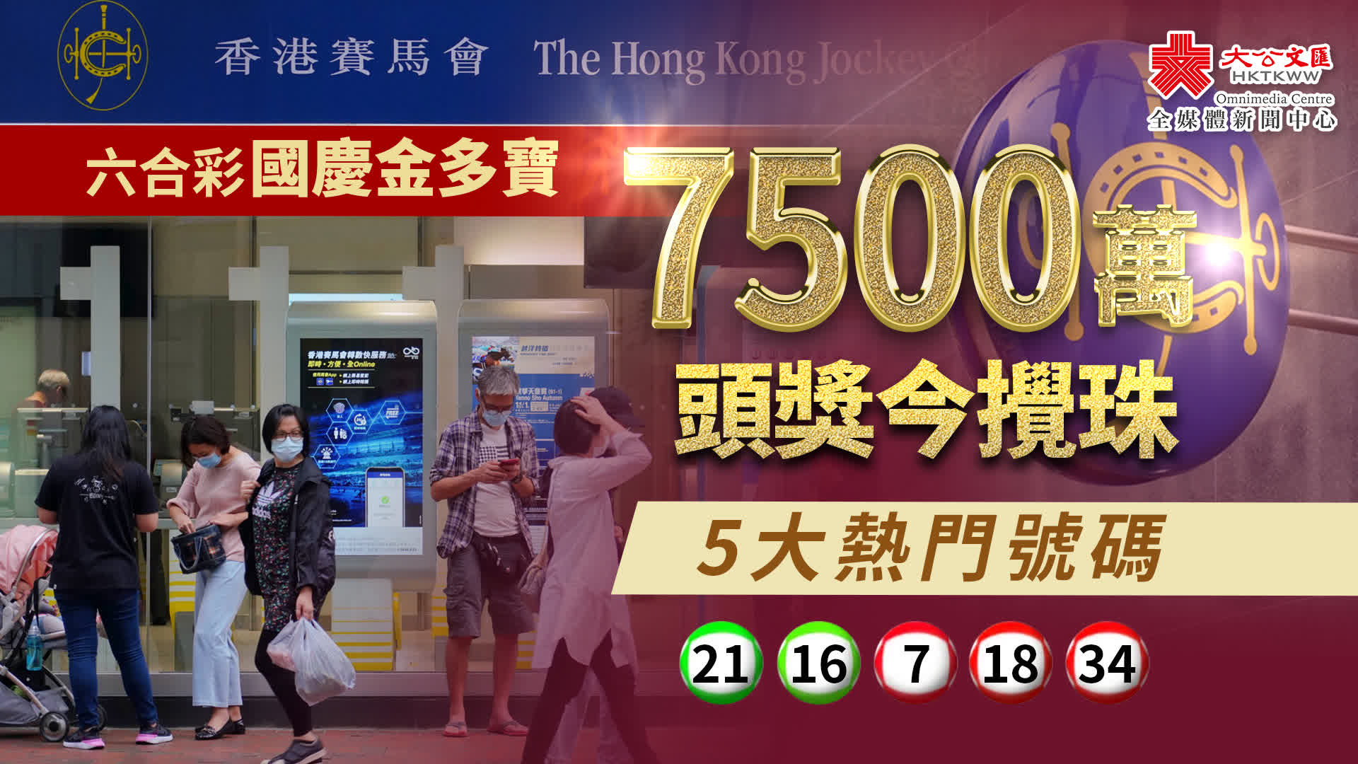 (大公文匯全媒體 記者 周傾芫)為慶祝中華人民共和國成立75周年,香港賽馬會隆重推出特別活動——六合彩國慶金多寶。今日(2日)及10月8日分別舉行兩輪攪珠,估計每輪攪珠頭獎基金可高達7,500萬元(以10元一注獨中),吸引了眾多彩民的關注與參與。