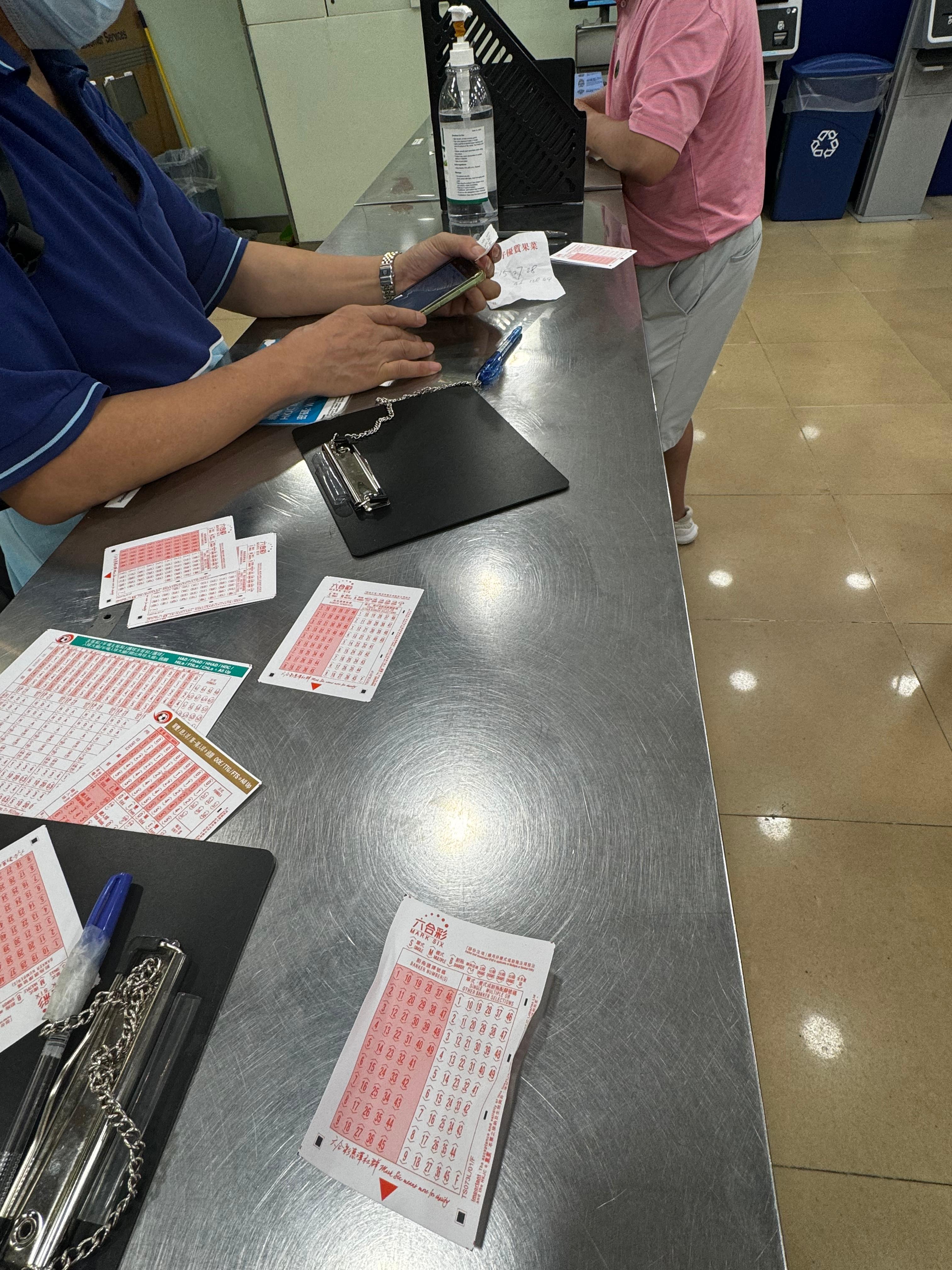 在馬會的投注站內,記者觀察到許多老人家排起了長隊購買六合彩。同時,也有市民選擇通過手機應用程式進行便捷投注。駱先生在選擇號碼時猶豫不決,最終在工作人員的建議下採用了電腦自動選號功能。梁先生則與妻子共同研究往期中獎號碼,希望從中挑選出幸運數字。更有市民採用膽拖投注方式,用大批千元鈔票增加贏得頭獎的機會。