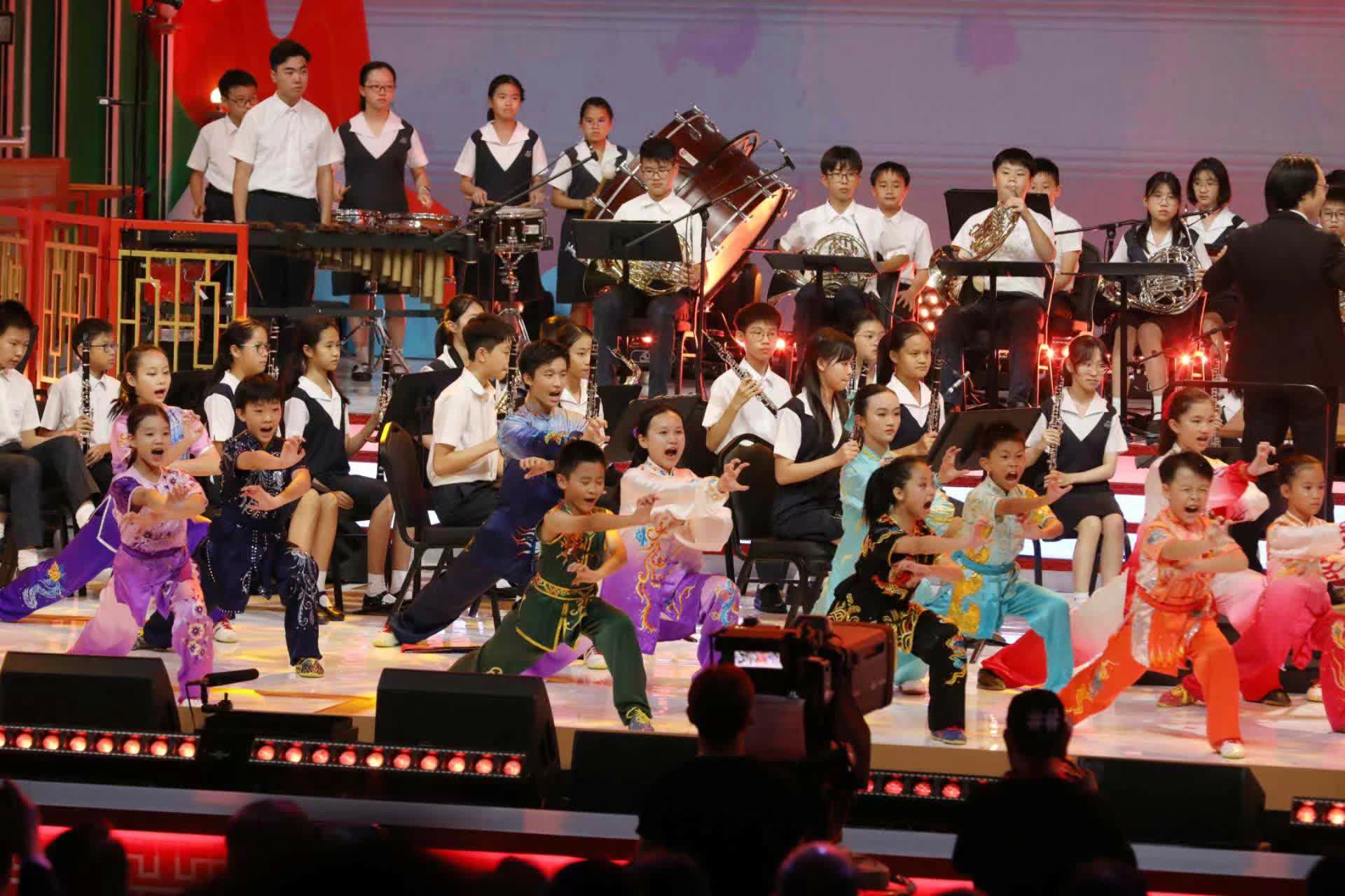 第四幕「同根同源 與時俱進」,以青年為主旋律的表演,一首《我和我的祖國》和《灣區是故鄉》,訴說粵港澳大灣區在祖國的護佑下不斷發展壯大,逐漸走向世界的故事。粵劇小演員功架十足的演出,顯示中華傳統文化在香港傳承的動力無限。