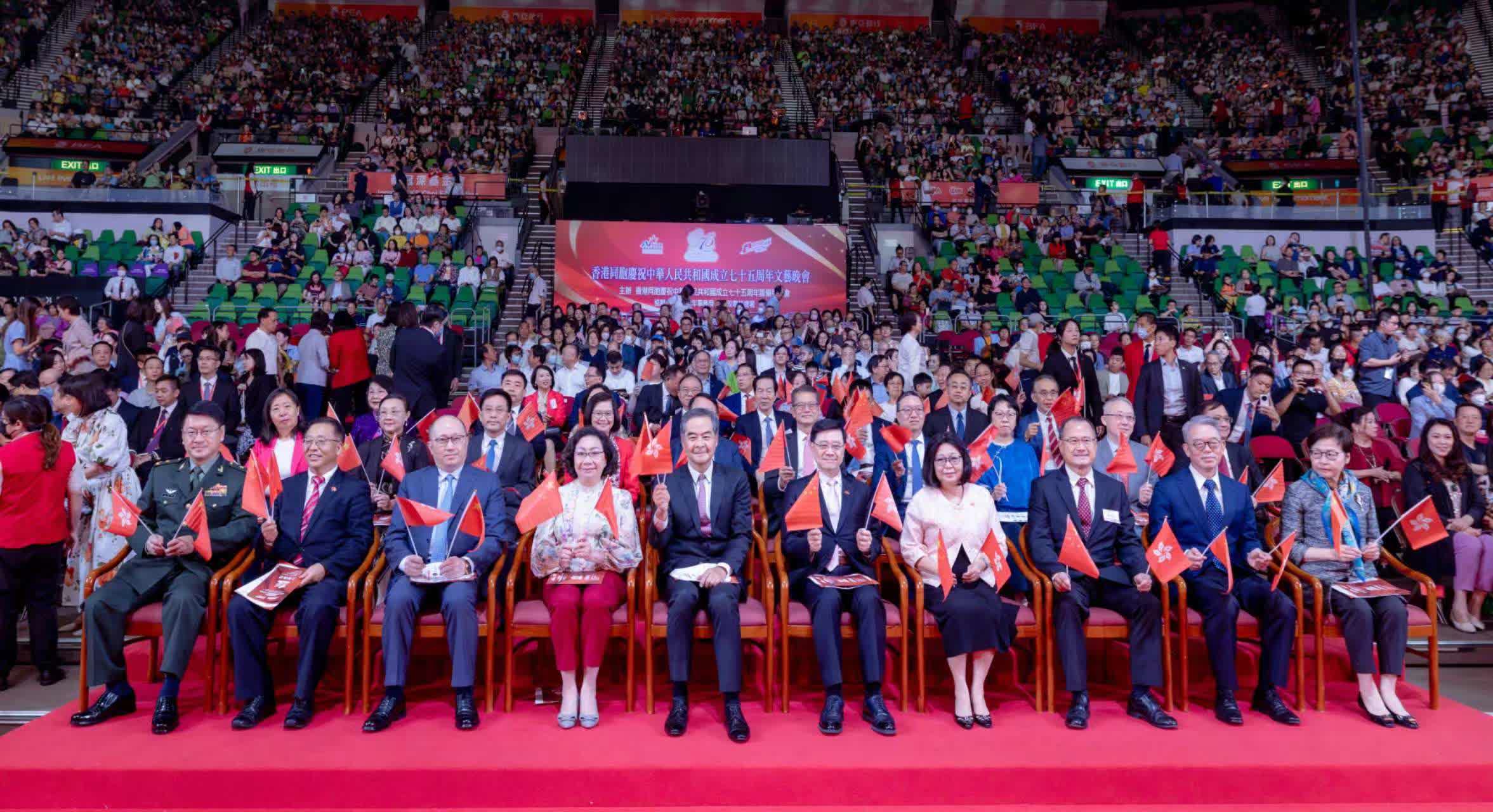 今年國慶文藝晚會由香港同胞慶祝中華人民共和國成立75周年籌備委員會主辦,特區政府民政及青年事務局、民政事務總署協辦。全國政協副主席梁振英、香港特區行政長官李家超,中央政府駐港聯絡辦主任鄭雁雄,外交部駐港特派員崔建春,駐港國安公署副署長孫青野,駐港部隊副政委王兆兵等出席主禮。