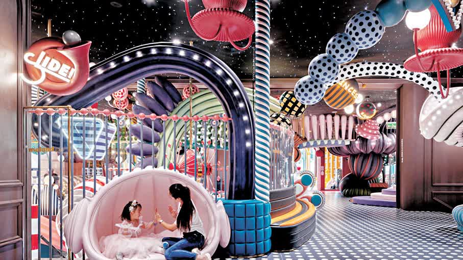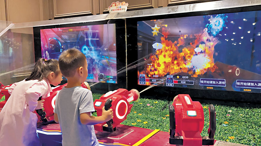 (香港文匯報記者 毛麗娟、李薇 深圳報道)在高空滑索享受滑行的樂趣、與寶貝一起在彈床上跳躍解壓、鼓勵孩子在玩樂中探索和學習……在深圳、廣州、中山等地,如MELAND、星際傳奇、Gjump運動樂園這樣的室內樂園,國慶黃金周人頭攢動。隨着「90後」「95後」父母成親子遊樂主力消費群,新生代家長對兒童遊樂園的審美、體驗、寓教於樂等要求也進一步提高,親子空間開始向沉浸式主題場景、一站式綜合體驗轉變,並成為大型商場的吸客利器。
