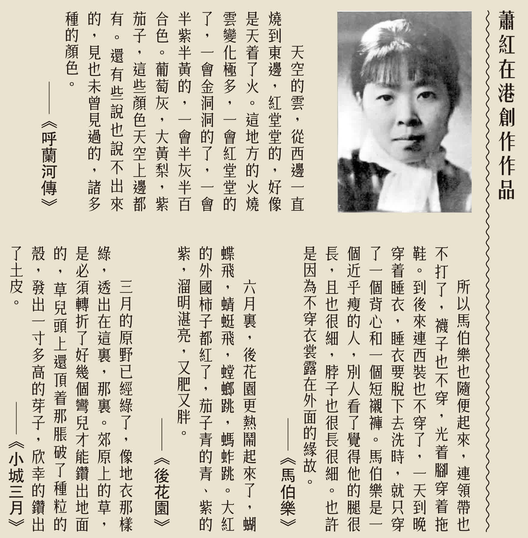 可以說,蕭紅雖然在香港走過了人生的最後兩年時間,於1942年病逝,但她在這段時期以「苦難中綻放璀璨」的姿態,書寫了人生的瑰麗篇章。