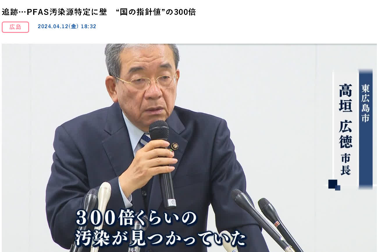 據環球時報報道,從日本媒體的報道來看,這件事源於去年當地的一次水質檢測。去年12月,東廣島市在當地的河流以及地下水中,發現水中的「全氟烷基和多氟烷基物質」(以下簡稱為PFAS)出現了明顯的超標。