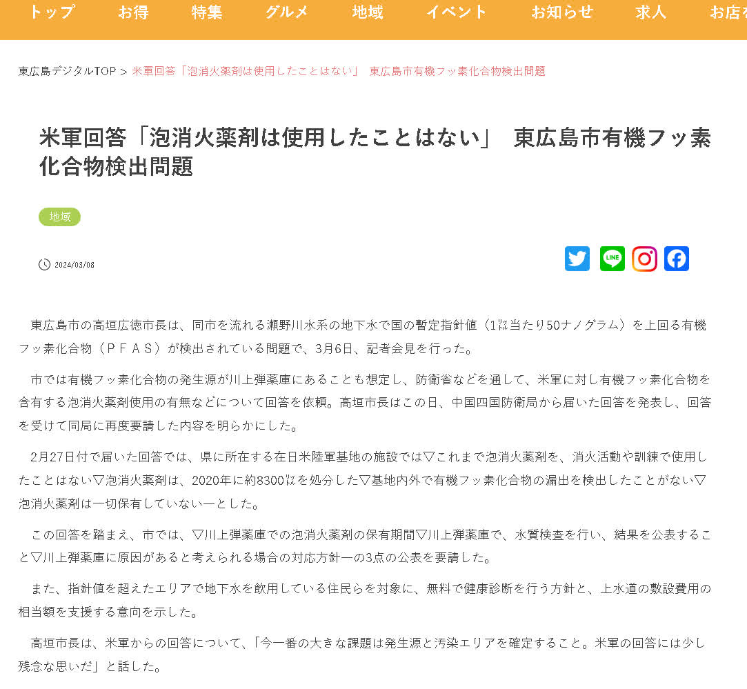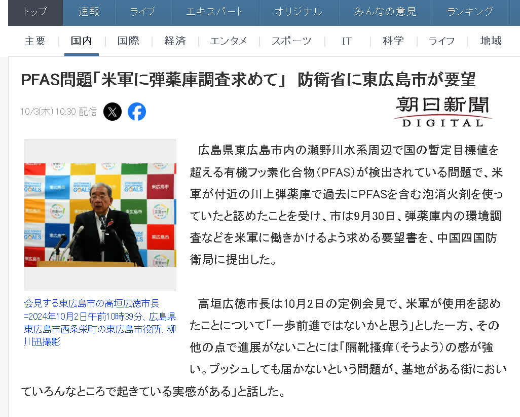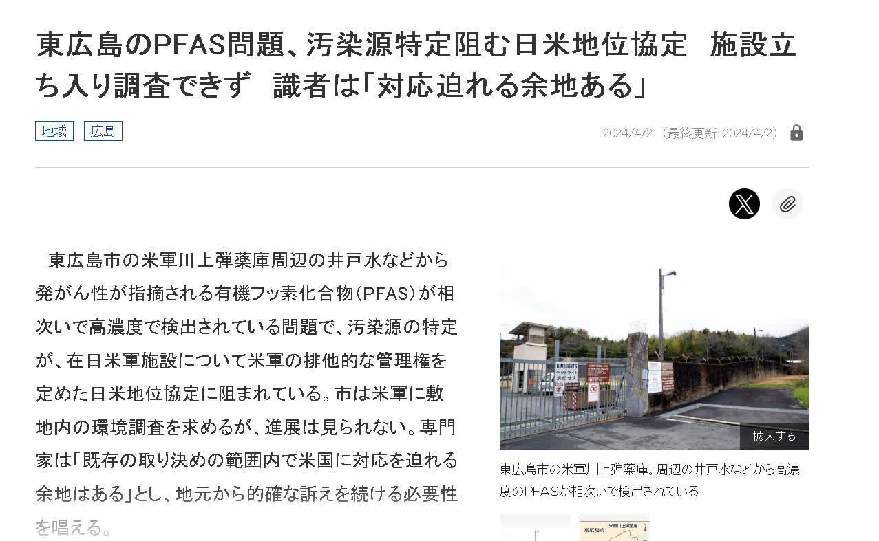 這恐怕也是為何,在面對如今東廣島市的問題時,當一些維護駐日美軍的人在日本的網絡上辯解說PFAS污染問題其他日本企業也有,為何只盯着駐日美軍時,《朝日新聞》等日本的新聞媒體卻能準確地找到《日美地位協定》這個問題的重點。