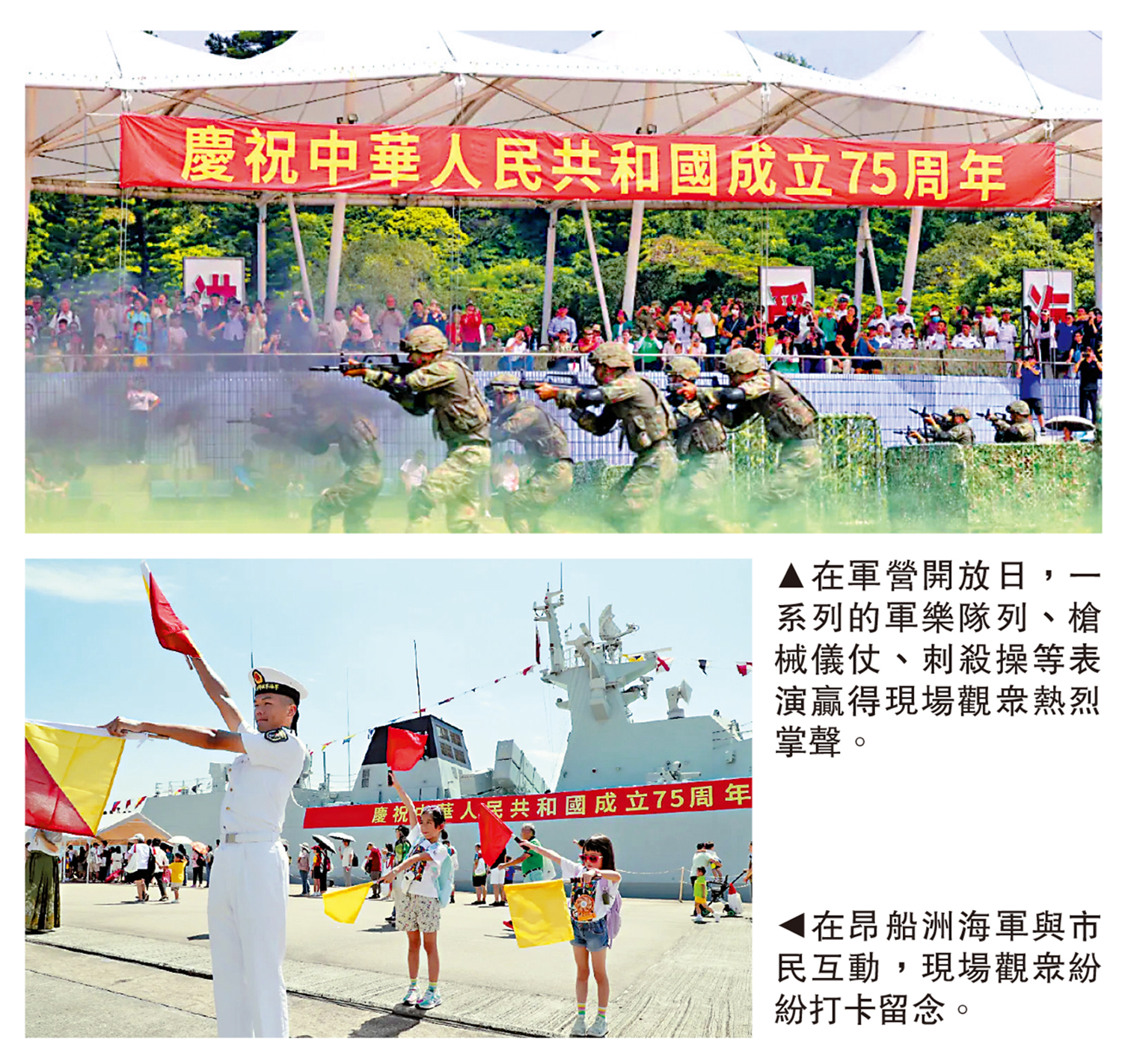 大公報據新華社報道:中國人民解放軍駐香港部隊5日舉辦「十一」軍營開放活動,數萬名香港市民走進昂船洲、石崗和新圍軍營,與駐軍官兵一起,共同慶祝中華人民共和國成立75周年。