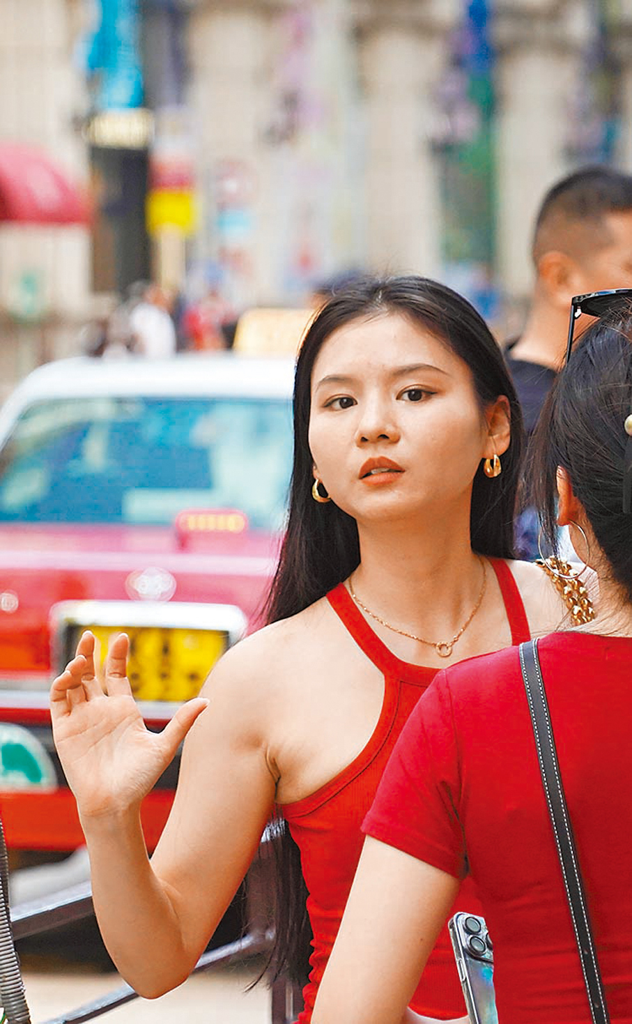 旅客方小姐與朋友在名店外排隊輪候入場,她認為香港旅遊體驗理想,最重要是滿足旅客多方面訴求,不論是喜愛時尚、文創、自然生態,或懷舊、 中西風情各取所需,任君選擇,她個人就鍾情在港買時尚產品,「香港名店的貨品款式較內地齊全、新穎,按匯率計算後,貨品價格仍比內地低。」今次她打算選購名牌手袋,揚言合眼緣的話,就不會設定消費上限。
