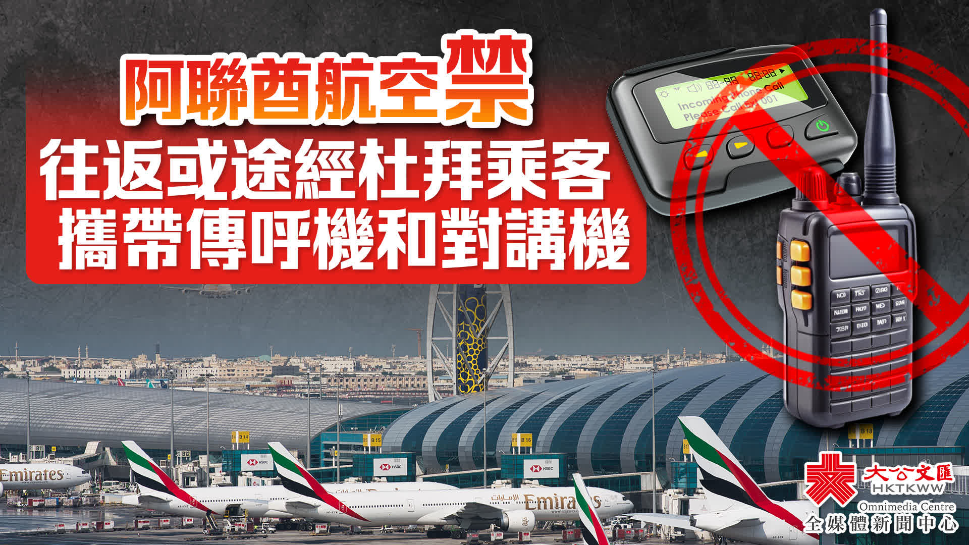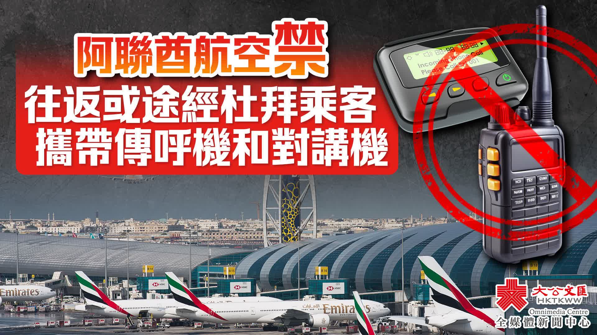 阿聯酋航空公司稱,所有以杜拜為起點、終點或途經杜拜的航班旅客,不得在手提行李和託運行李中攜帶傳呼機和對講機。乘客行李中一旦發現這類設備,將被杜拜警方查沒。