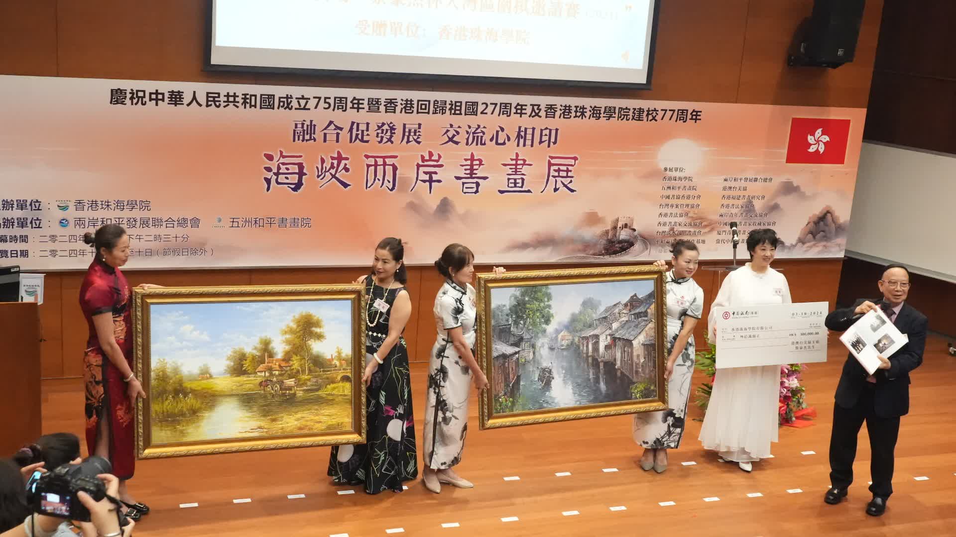 (大公報記者徐小惠)為慶祝中華人民共和國成立75周年、香港回歸27周年、香港珠海學院建校77周年,「融合促發展 交流心相印」海峽兩岸書畫展於香港珠海學院蘇秀蓮展覽廳舉辦,展出來自超過16個書畫協會的一百多位藝術家帶來作品一百餘件,自即日起至10月10日、10月14日至22日(公眾假期除外)分兩場免費開放予公眾參觀。