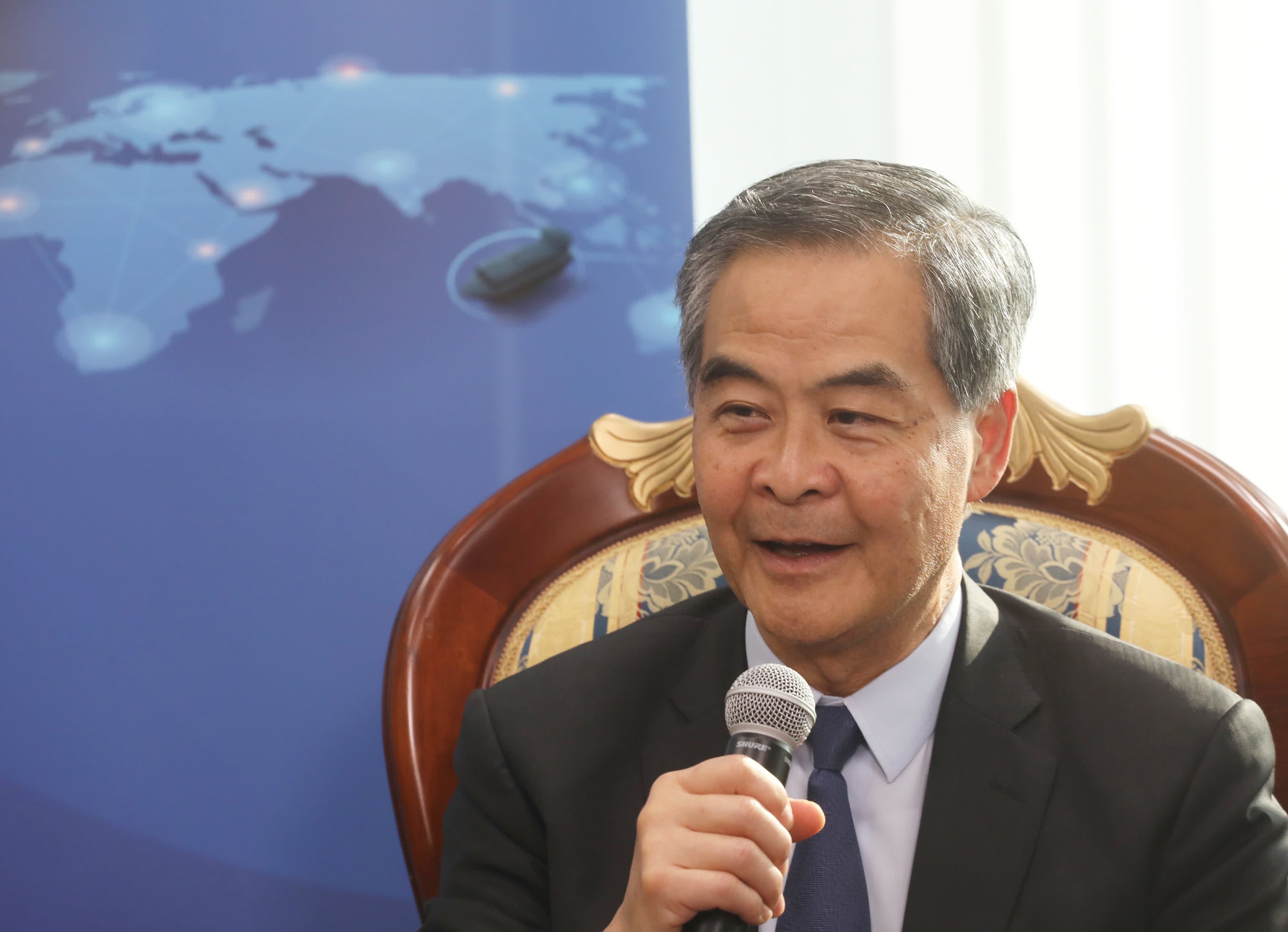 梁振英以前在不同場合曾將英國倫敦的航運中心地位與香港作比較,他今日再度指出,倫敦在沒有港口的情況下仍能成為最高產值航運中心,因為今時今日國際航運中心,已經不再以港口處理多少貨櫃論英雄。他認為香港與倫敦各有強項,而香港更有一些倫敦欠缺的優勢。香港的貨櫃碼頭具國際性、高效、活躍等特性,這是倫敦所欠缺的;香港面向國家的龐大市場,中國也是世界上一個主要的造船大國、航運大國和貿易大國,亦是倫敦缺乏的;此外,香港特區擁有的「一國兩制」優勢,也是香港航運業的獨特優勢。