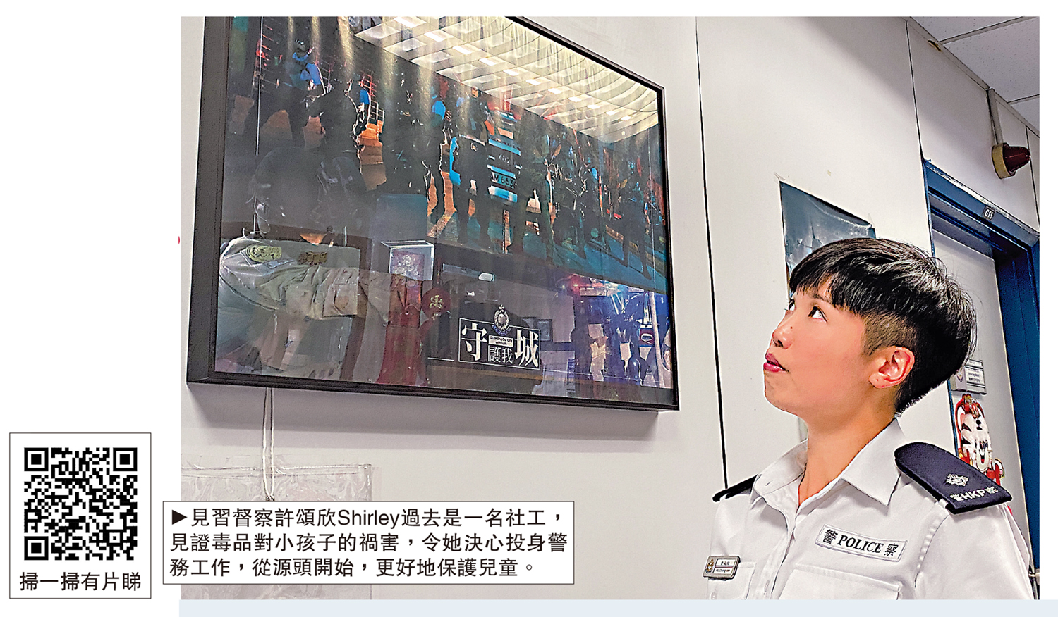 (大公報 記者 葉浩源)「我想更好地保護小朋友。」見習督察許頌欣(Shirley)加入警隊前是一名社工,跟進過不少涉及兒童的個案,令她深深體會到兒童的無助和痛苦,當中,毒品對兒童的遺害尤其深遠。