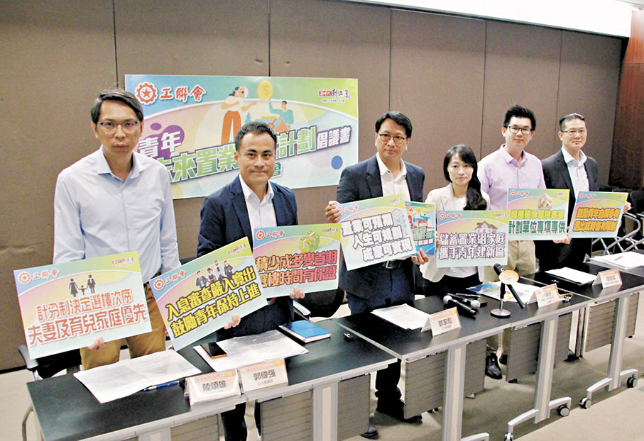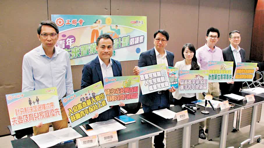 工聯會青年事務委員會委員胡景霖表示,年輕人有置業意願,但是奈何受樓價高企影響難圓夢。他指出,去年各區40平方米以下私人住宅單位每平方米的平均售價,雖然已比2021年的高位回落,但相對於2004年的售價,仍上升3.7倍至4.3倍。而25歲至34歲全港青年每月就業收入中位數,則由2004年的一萬元,升至去年的2.12萬元,增幅僅約1.3倍,明顯被樓價之升幅大大拋離。若去年購買一間約323平方呎的單位,不少時下青年要工作十五年不吃不喝才負擔得起。