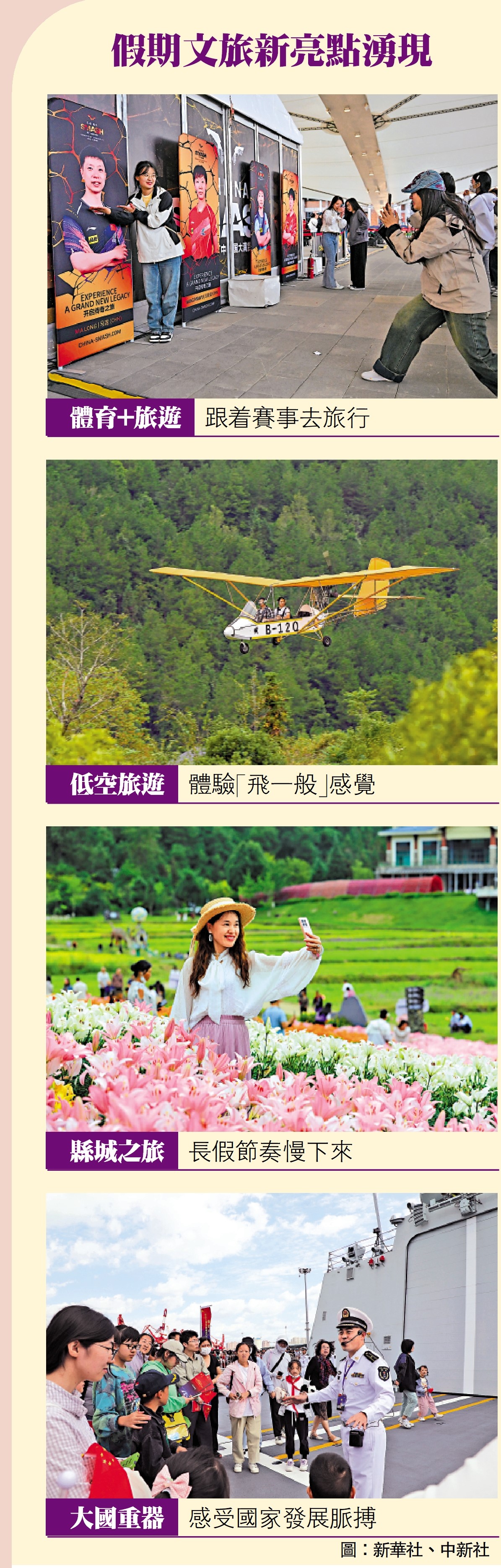 (大公報 記者 江鑫嫻)內地國慶節長假火爆落幕。文化和旅遊部8日發布消息稱,經測算,國慶節假日7天,全國國內出遊7.65億人次,按可比口徑同比增長5.9%,較2019年同期增長10.2%;國內遊客出遊總花費7008.17億元(人民幣,下同),按可比口徑同比增長6.3%,較2019年同期增長7.9%。除了熱度持續在線的景區遊、文博遊、國潮熱以外,這個假期還湧現多個文旅新亮點,例如「跟着演出、賽事去旅行」,有力激發了消費新動能。