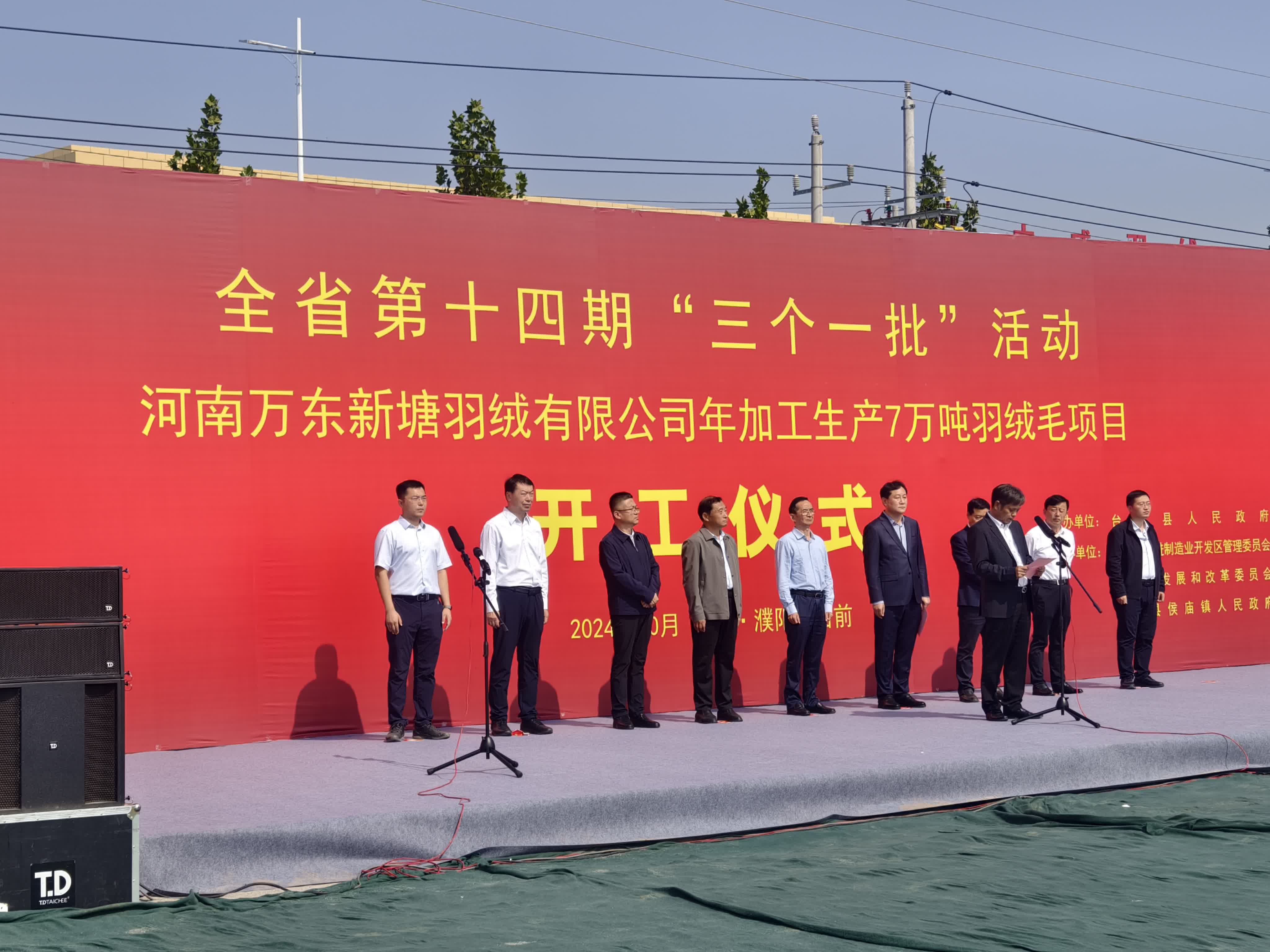 投資6億元的河南萬東新塘羽絨有限公司年加工生產7萬噸羽絨(毛)項目、投資3.4億元的京雄商高鐵台前縣站房建設項目、投資1.2億元的濮陽市戈斐服裝有限公司年加工350萬套運動服飾項目……此次集中開工重點項目共8個,概算總投資16.65億元,涵蓋先進製造業、戰略性新興產業、重大基礎設施、新型城鎮化、現代農業、民生和社會事業等領域,將進一步為台前高質量發展注入強勁動力,提供有力支撐,蓄積更大潛能。