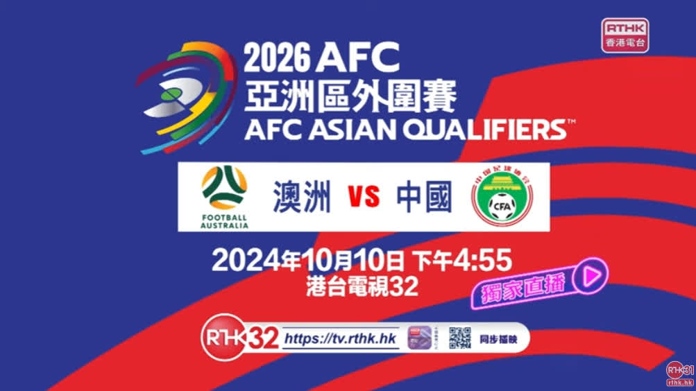 大公文匯全媒體報道,國際足聯2026世界盃亞洲區預選賽十八強賽明晚(10日)舉行,國足香港時間下午5時10分客場挑戰澳洲隊。中國足協今晚(9日)公布賽事海報,同前兩場預選賽一樣,海報中內地轉播平台僅愛奇藝一家,換言之,央視連續三場不會轉播國足比賽。不過,香港球迷仍然有得睇,港台電視32將免費直播。