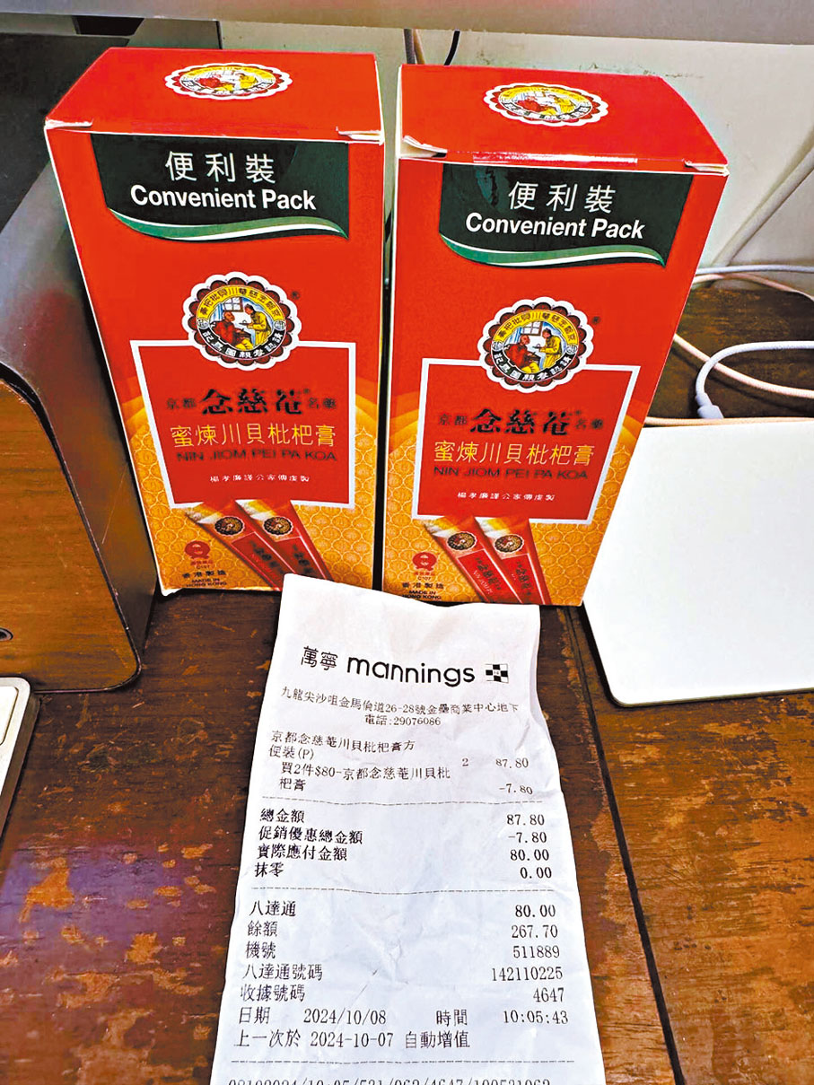 女事主以「motostudiohk」賬號在Threads發文,稱前日早上10時,她到任職公司附近的萬寧買兩盒川貝枇杷膏,並以八達通自助付款。詎料剛離開萬寧約50米時,「突然間有一個女人箍住我條頸,另一個女人扯住我個背囊,然後好大聲咁話:你跟我過嚟!你冇畀錢!你偷嘢!」