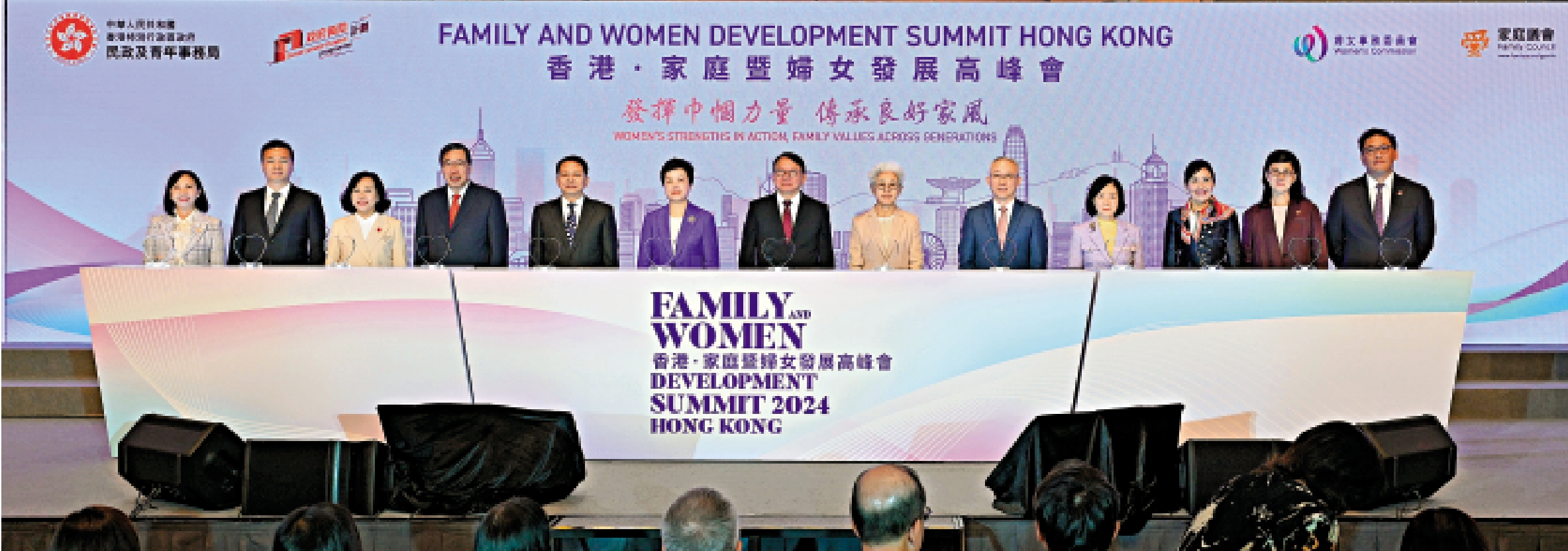 政務司司長陳國基在高峰會開幕禮致辭時表示,香港女性除了為社會和經濟發展貢獻智慧和力量,在家庭、家教、家風建設也發揮獨特作用。女性佔香港整體人口54%,在不同領域都有卓越成就,舉例在專業界別中,超過一半註冊會計師及律師為女性,註冊醫生有三成半是女性,公務員體系內最高職級的常任秘書長,18位中有12位是女性。隨着社會進步,新時代女性自強、自立,盡展潛能,是推動社會發展的中流砥柱。