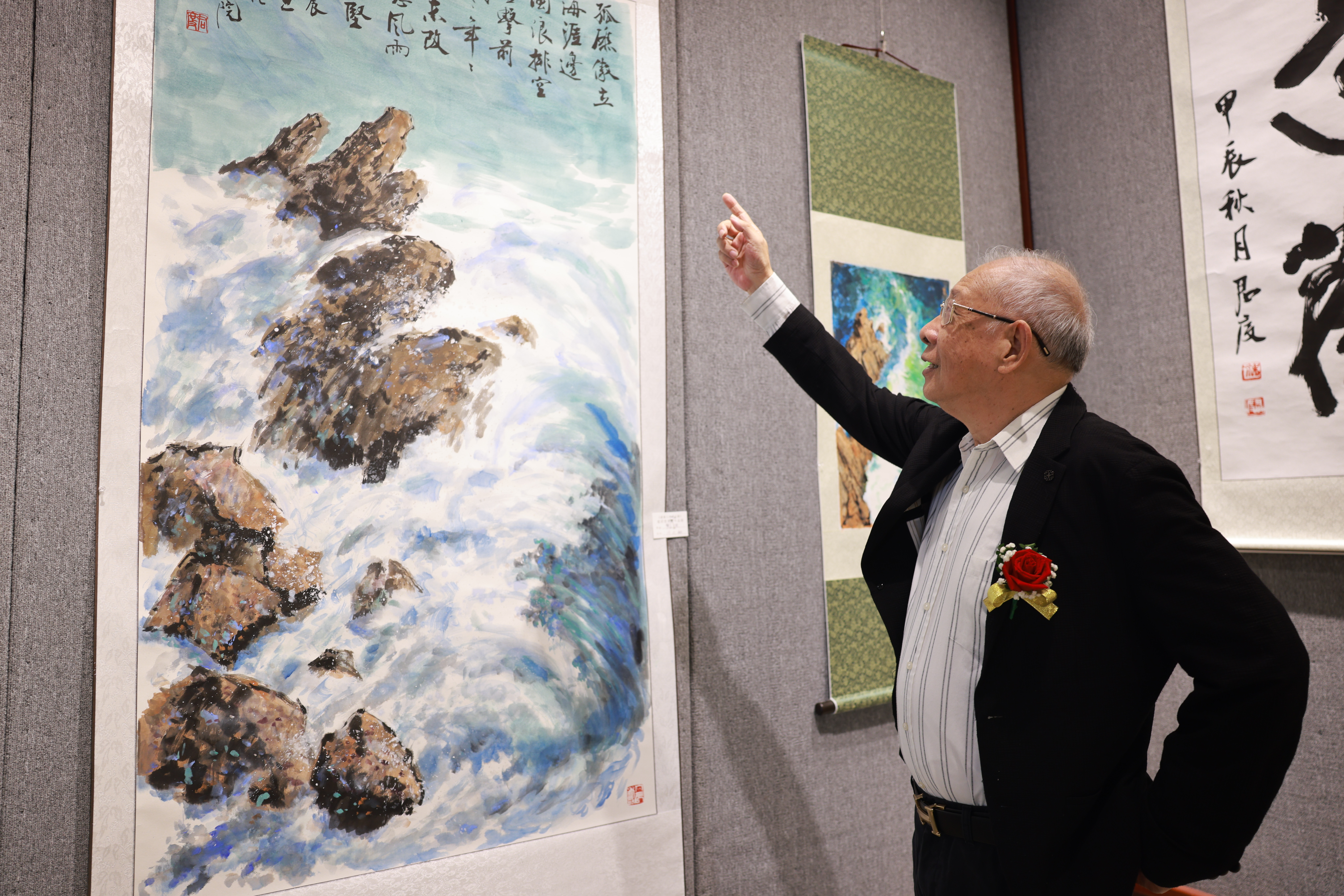 (大公文匯網記者 胡若璋)10日,「滄桑入韻紙間凝——梁君度書畫作品展」在廣州文化公園正式開展,展期至26日。梁君度此番攜帶超百幅書畫作品與廣州觀眾見面,其中也有不少為了本次展覽而準備的新作。例如,畫作《擊浪》,梁君度表示,今次畫展以「滄桑」為題,也是他本人站在八字頭的歲月,回看過往滄桑卻依然能夠熱愛生活。就像新作里海邊的礁石一般,經過多少潮起潮落和雨打風吹,總能屹立在那,給人以堅忍不拔之姿。
