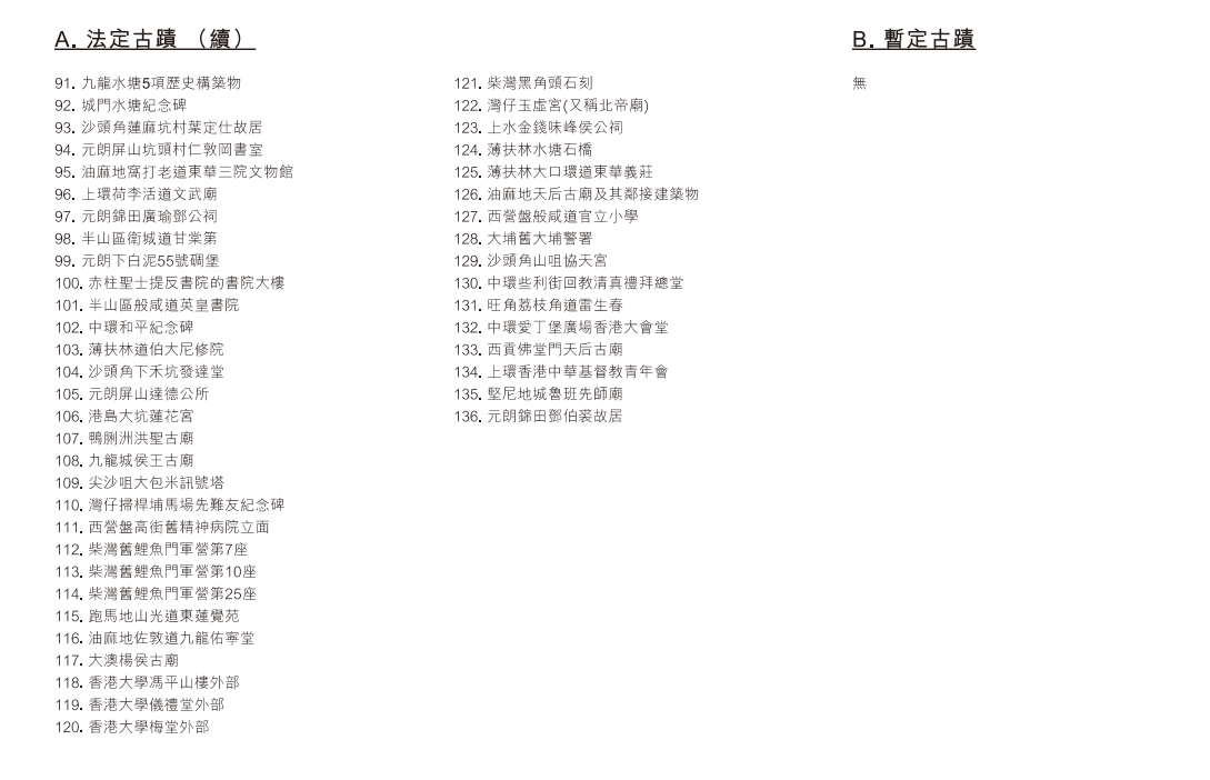 大公文匯全媒體報道,政府今日(10)刊憲,公布古物事務監督(即發展局局長)根據《古物及古蹟條例》將位於堅尼地城的魯班先師廟和元朗錦田的鄧伯裘故居列為法定古蹟。截至最新數據,本港現有136個法定古蹟。