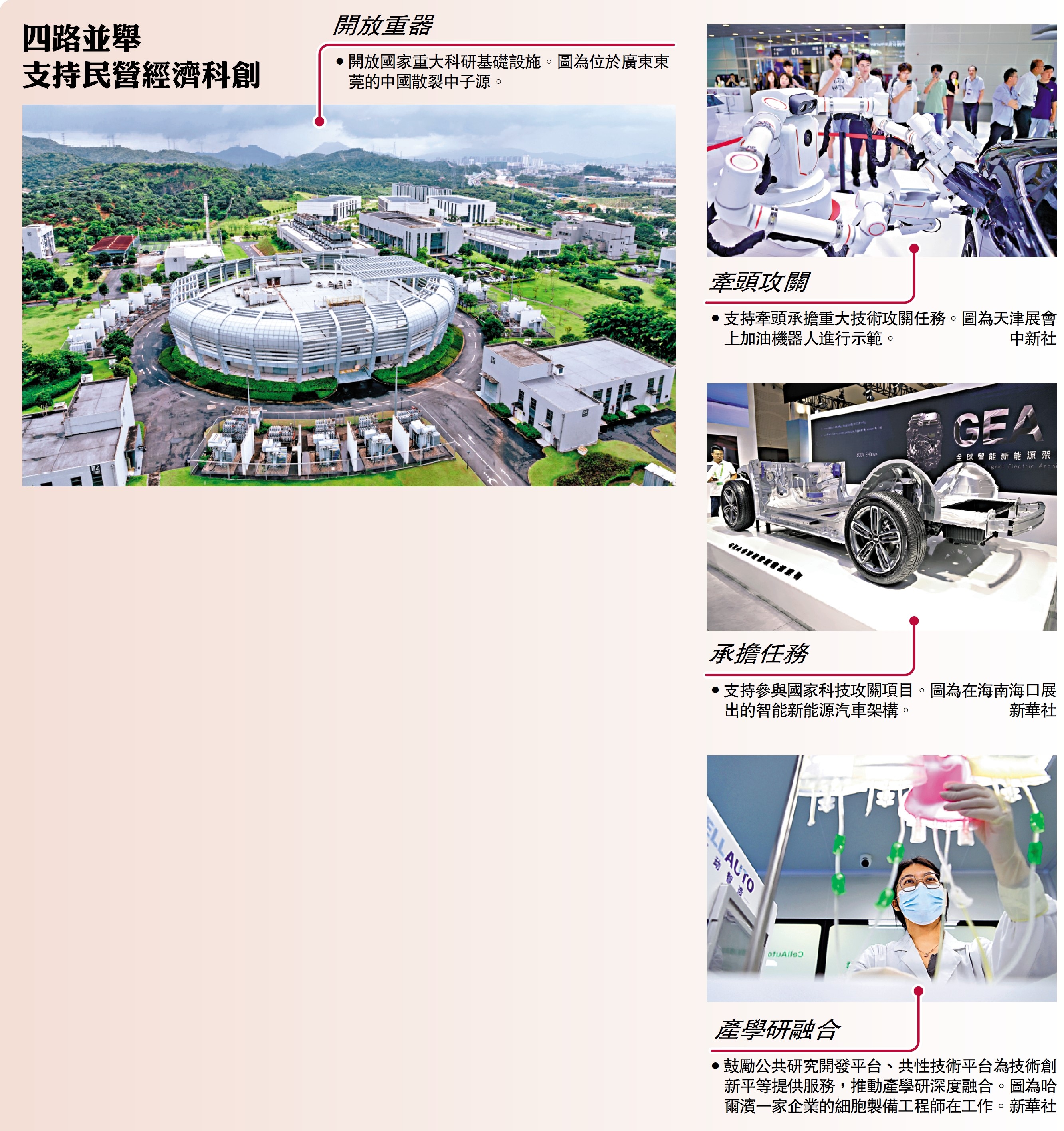 《中華人民共和國民營經濟促進法(草案徵求意見稿)》明確提出,向民營經濟組織開放國家重大科研基礎設施。國家發展改革委數據顯示,民企近年來創新水平不斷提升。截至去年底,國家高新技術企業、科技型中小企業擁有有效發明專利213.4萬件,佔國內企業總量近四分之三。在位於廣東東莞的中國散裂中子源實驗室裏,時常遇到來自大灣區各地的產業負責人前來求助,冀利用探秘微觀世界的「國之重器」解疑難。「我們企業的分析能力有限,希望借助科研機構的專業檢測能力,共同推動這個行業的發展。」車用電池企業工程師易觀貴曾帶着新研發的全固態電池到中國散裂中子源尋求幫助,對產研合作十分滿意。