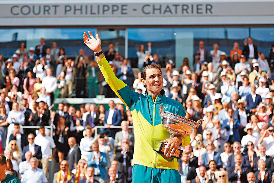 (香港文匯報記者 郭正謙 綜合報道)有「泥地王」之稱的西班牙網球名將拿度昨日宣布,將會在今個賽季結束後退役。擁有22個大滿貫賽事冠軍的他近年飽受傷患困擾,最後終於決定在今年11月代表西班牙戰罷台維斯盃後,跟隨老對手費達拿的步伐高掛球拍,這亦意味着近20年主宰網球壇男子賽場的「三巨頭」,將會只餘下祖高域仍在賽場奮戰。
