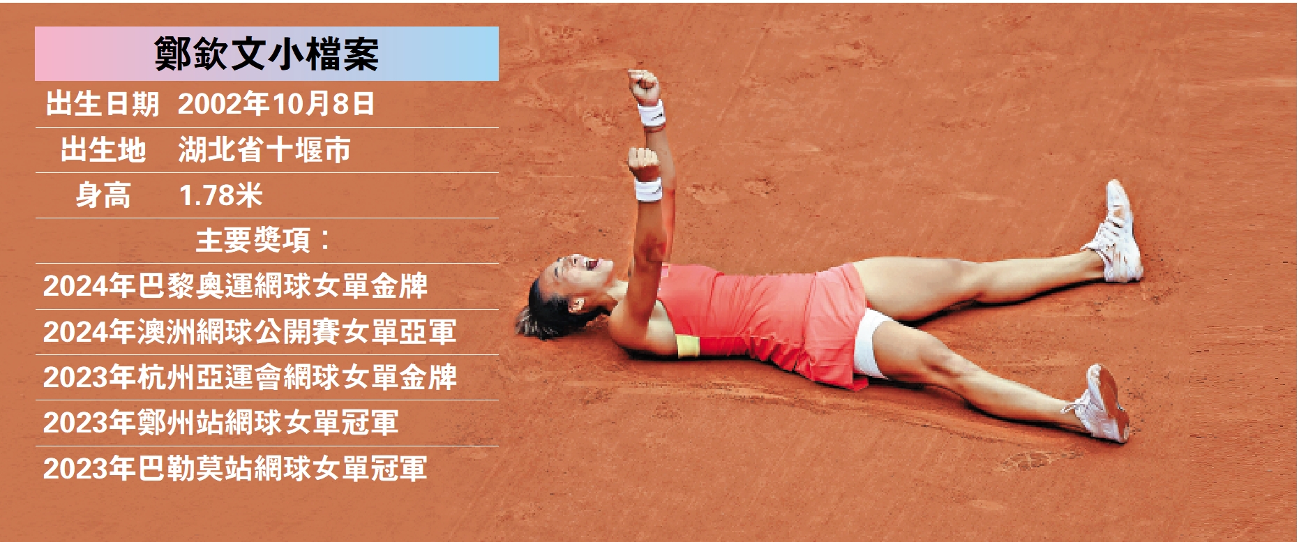 (大公報記者 張帥、歐陽思柔 武漢報道)登上奧運會最高領獎台的鄭欽文笑容燦爛,她兩次舉起金牌向全場展示,而後咬了咬這塊重量不輕的圓形金屬。在8月的巴黎,中國網球單打選手第一次嘗到了奧運金牌的味道。鄭欽文晉級之路場場硬仗,她最終用自己獨特的姿態走在創造歷史的路上,儘管過程中傾盡所能,但她卻為了替祖國爭光,永不言累。除此之外,對於錯過八月底隨內地奧運健兒代表團訪港一事,鄭欽文對此感到遺憾,但希望下次有機會來港與香港球迷見面。