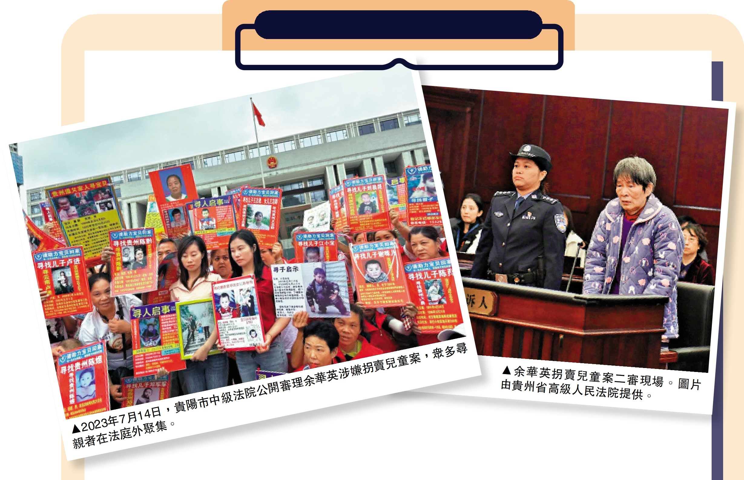 據大公報綜合央視新聞、澎湃新聞報道,2023年7月14日,貴陽中院開庭審理被告人余華英拐賣兒童案。2023年9月18日,貴陽中院一審判決余華英犯拐賣兒童罪,並判處死刑,剝奪政治權利終身。2023年11月28日,該案在貴州省高級人民法院二審開庭。2024年1月8日,貴州省高級人民法院對余華英拐賣兒童案作出二審裁定,發回重審。法院認為,原判遺漏原審被告人余華英其他拐賣兒童的犯罪事實,部分事實不清楚,為查清上訴人余華英全部犯罪事實,應予重審。