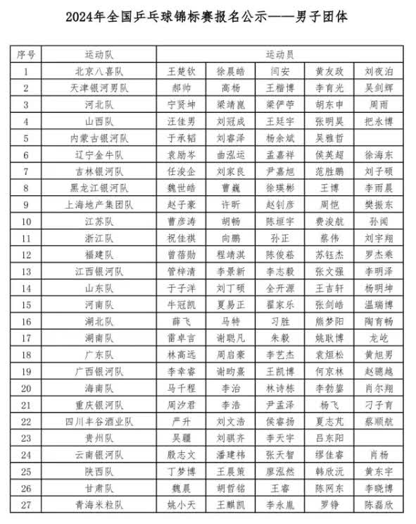全錦賽一直被譽為地表最強乒乓球賽事,而且還有國家隊的選拔機制,在全錦賽表現出色的運動員,有機會直接入選國家隊,所以競爭非常激烈。每年全錦賽的精彩對決也被網友笑稱為「神仙打架。」 由於亞錦賽正在進行中,國乒部分主力將在後階段加入全錦賽。目前確認的是,馬龍、陳夢都不會參加本屆全錦賽。王楚欽、林高遠、梁靖崑、林詩棟將參加男團比賽,孫穎莎、王曼昱、王藝迪、陳幸同將參加女團比賽。